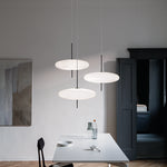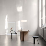 The Astep[ Model 2065 is made of two joined opaline methacrylate saucer-shaped diffusers, suspended from a black painted aluminium ceiling canopy. The simplicity of the design and lightness of the materials makes for an elegant and free-floating luminaire. The newest version adds to these features in terms of sustainability: the diffusers are made of Green Cast®, a 100% recycled and recyclable PMMA (polymethyl methacrylate) — patented and made in Italy — that has exactly the same aesthetic and functional quality of original methacrylate.