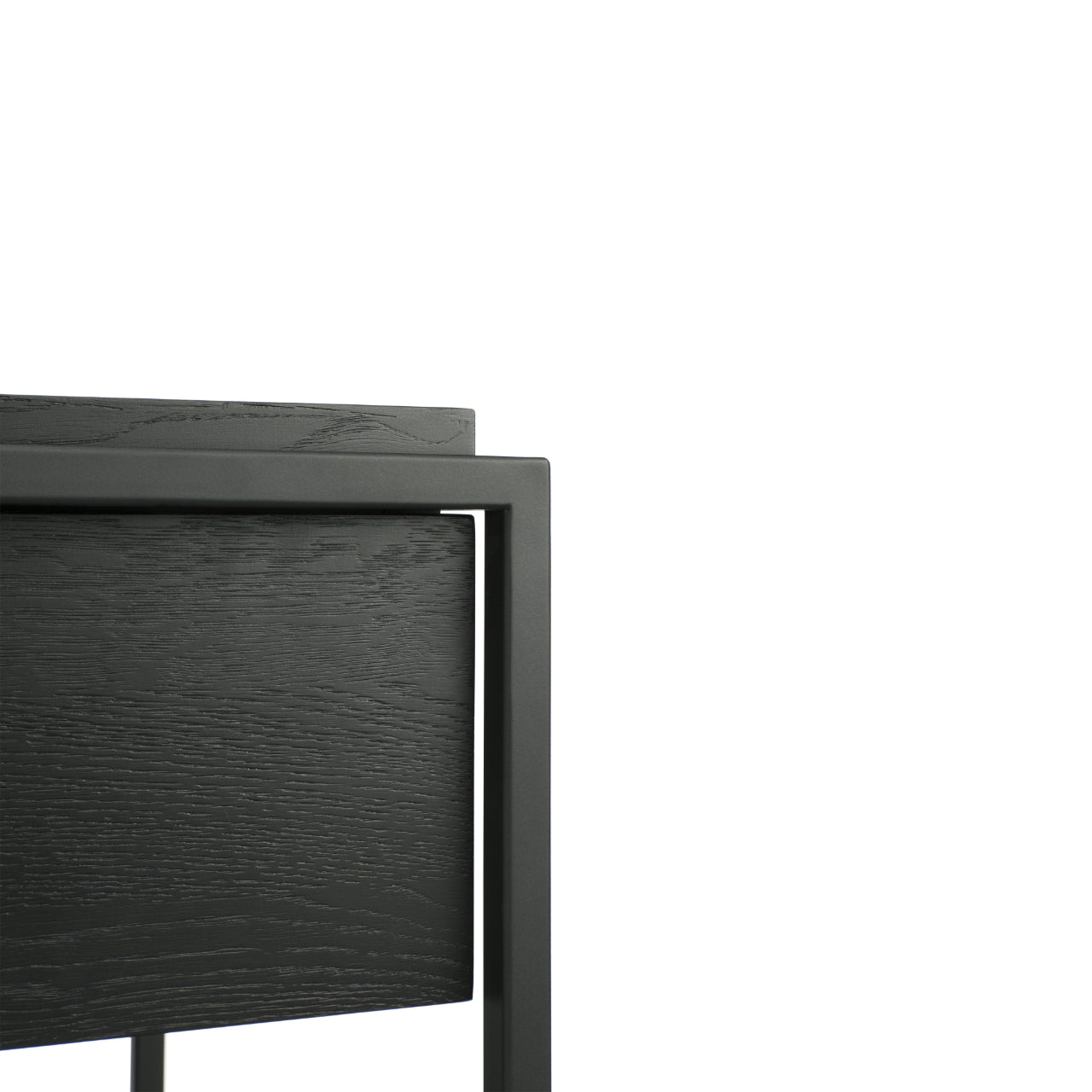• Product Material: Made from black tainted solid oak with a varnish finish and a black metal frame