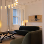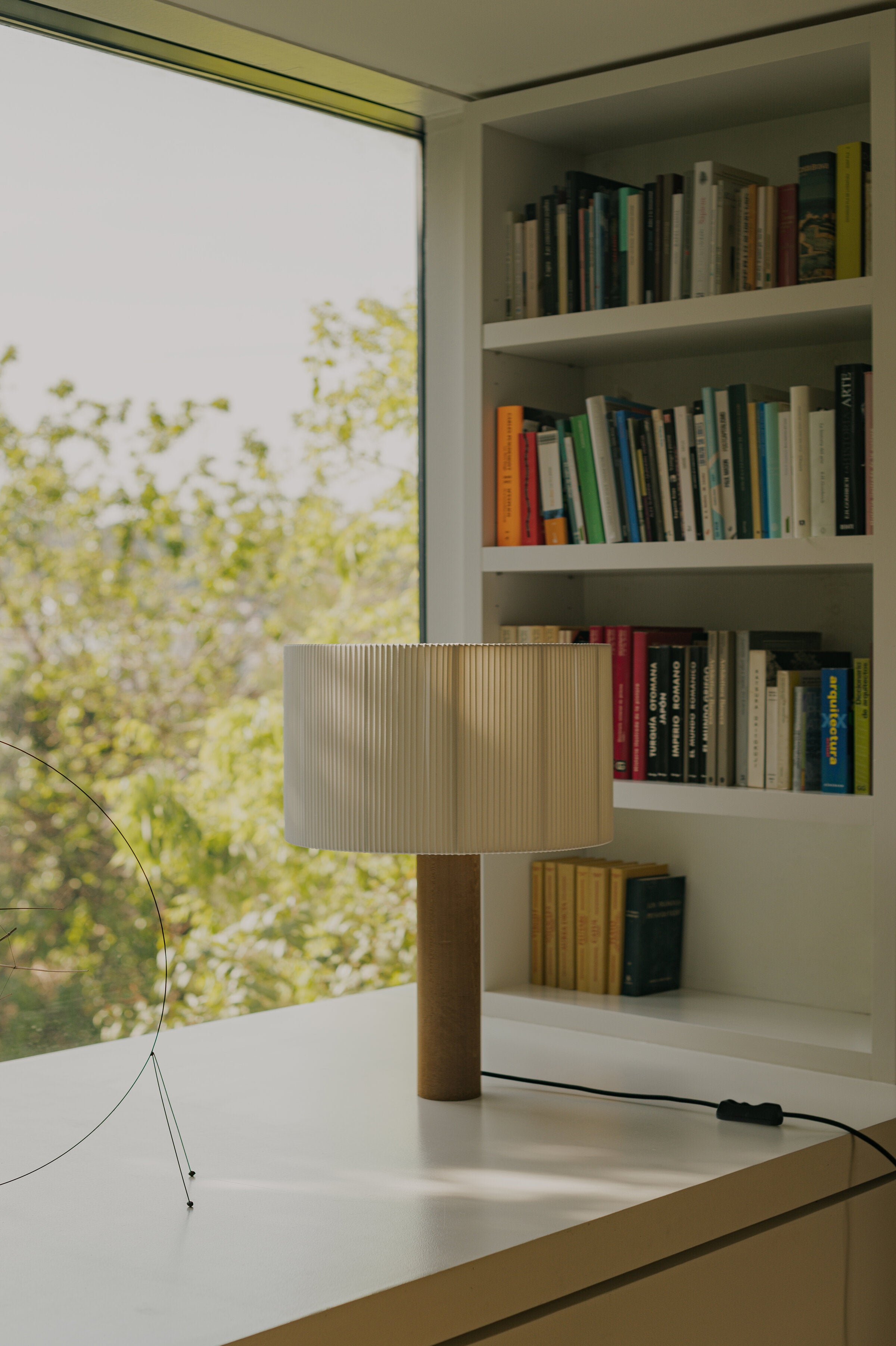 The Moragas lamp by Santa & Cole is distinguished by its soft textile shade, finished with a stitched edge that recalls traditional bookbinding techniques. This subtle detailing introduces an elegant asymmetry, enhancing the interplay of light and shadow when the lamp is illuminated. Moragas by Santa & Cole produces a warm, ambient light ideal for reading corners, lounge areas, or quiet evening settings.