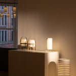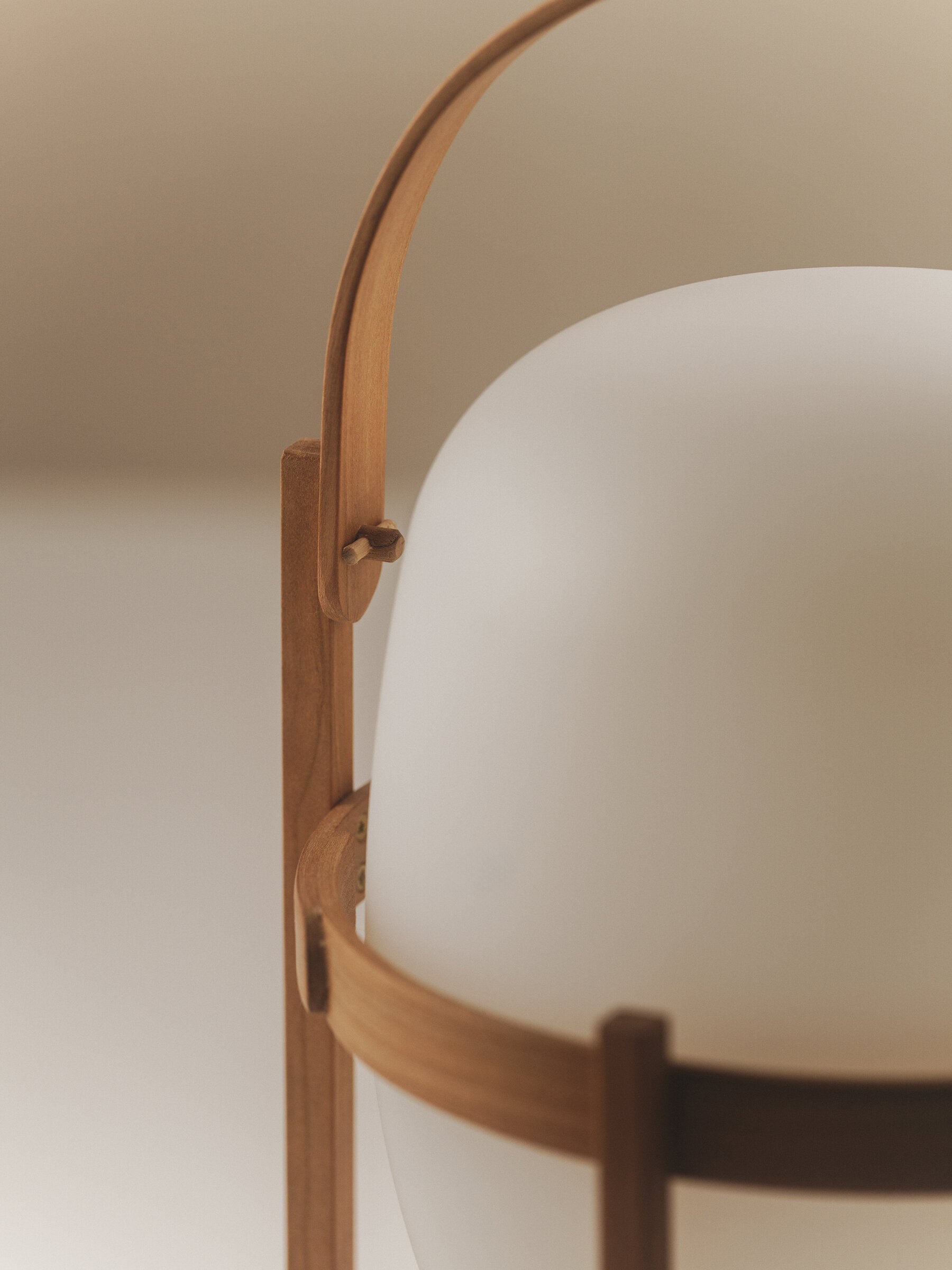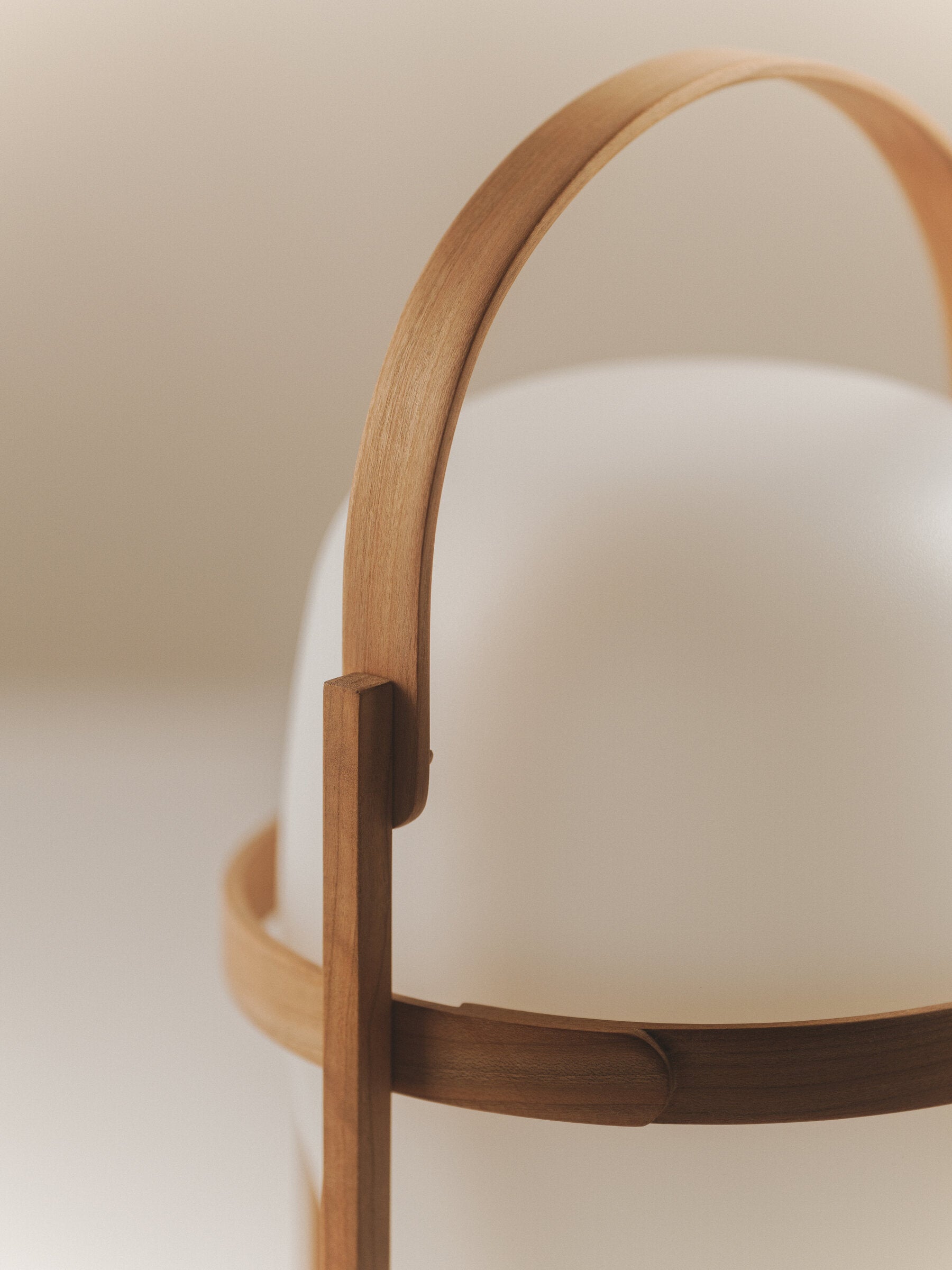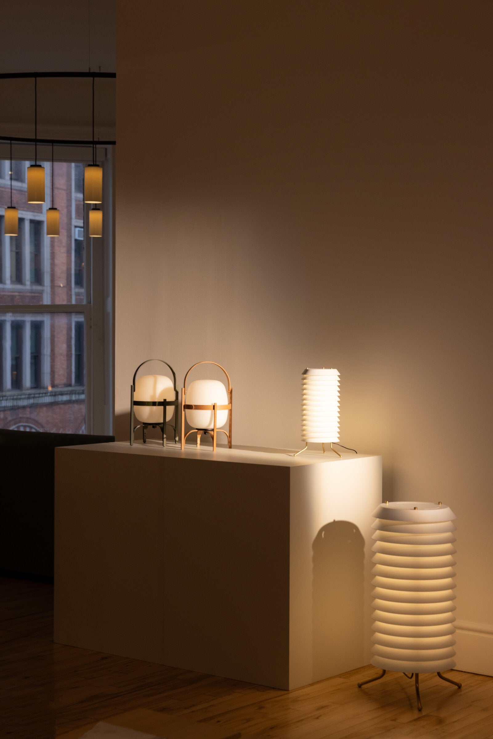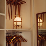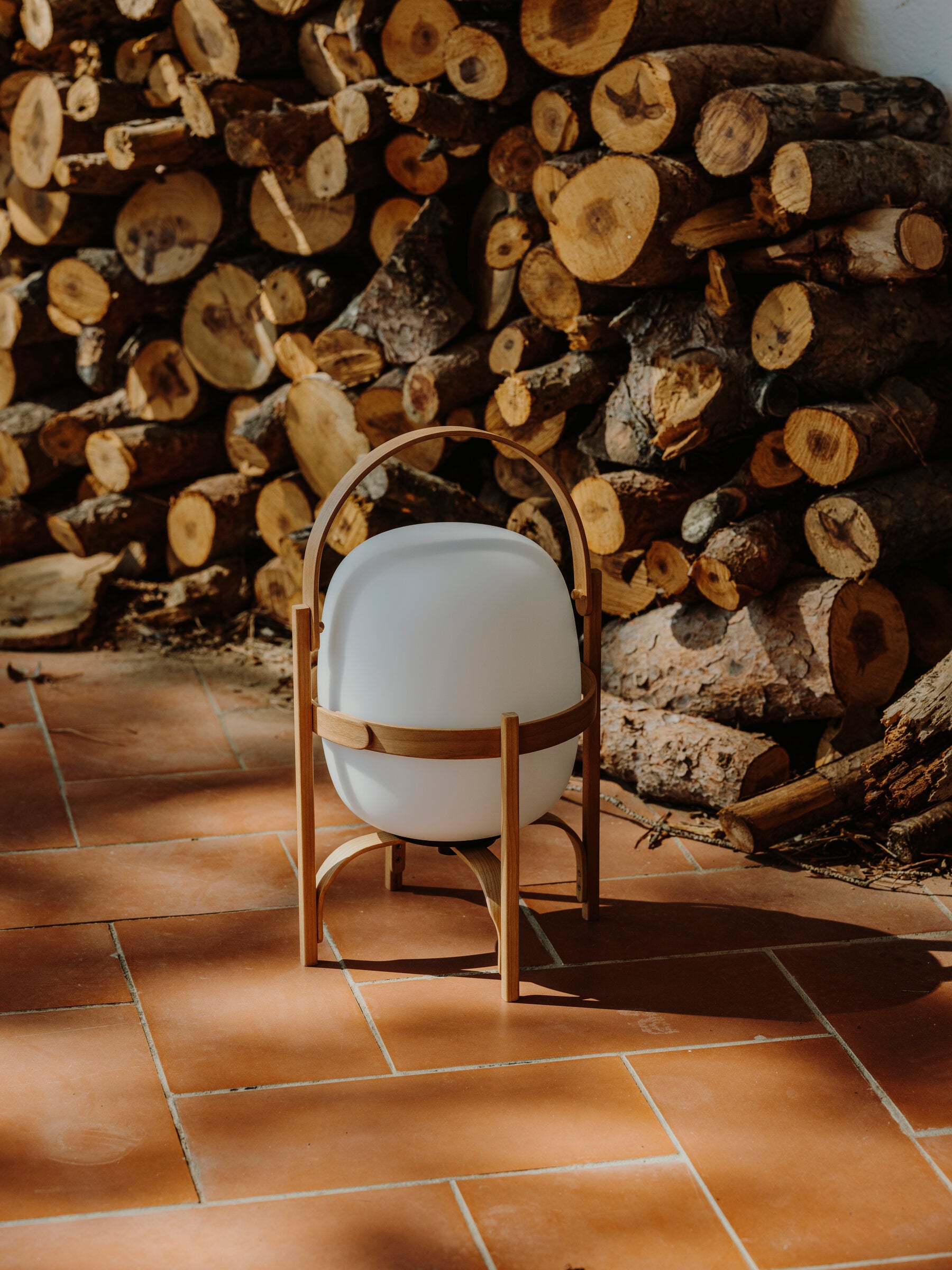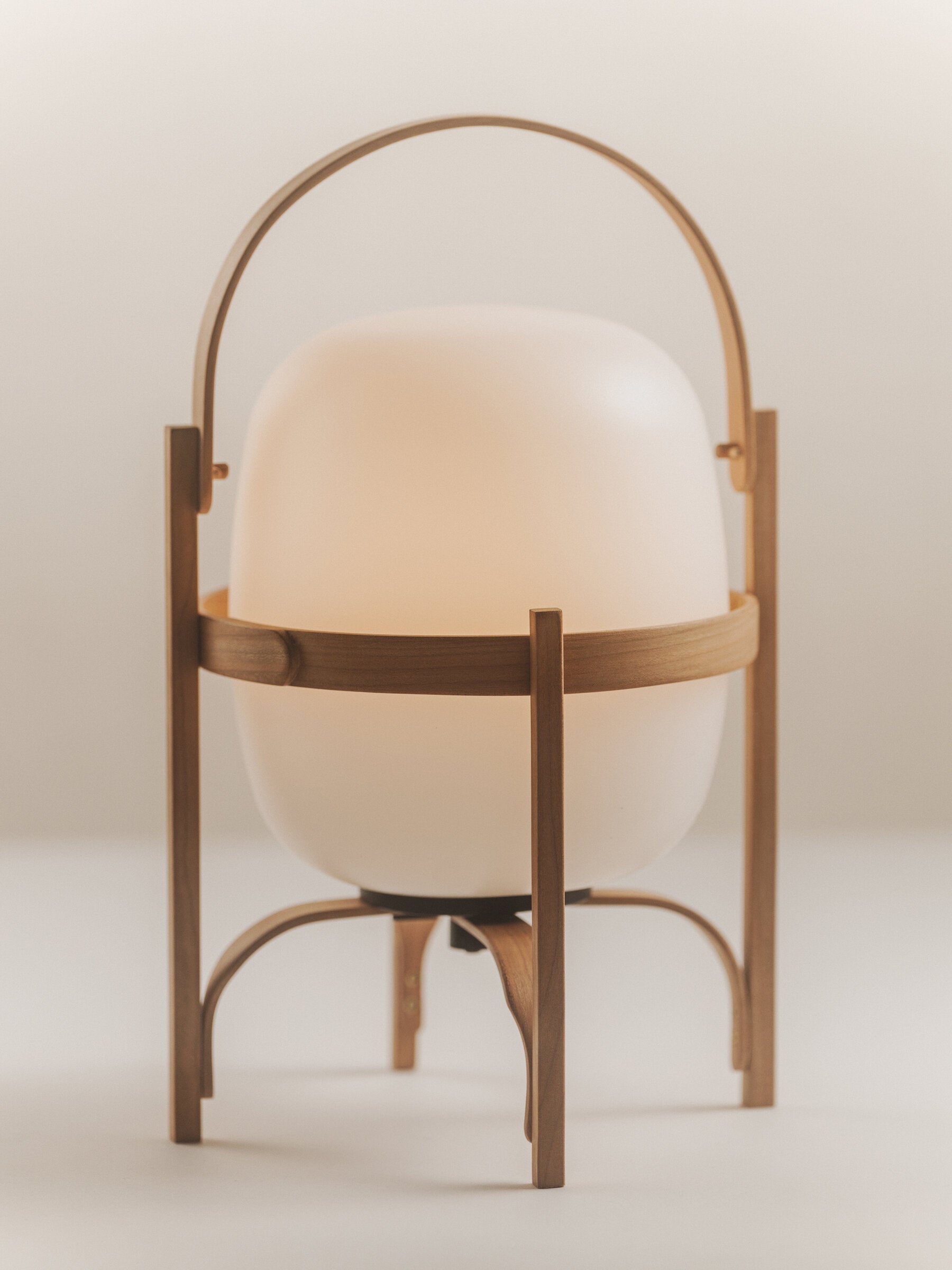 The result is a beautifully balanced table lamp that radiates warmth, simplicity, and modern craftsmanship. The Basket lamp features a curved, hand-assembled wooden frame that supports a delicate globe, available in either opal glass for a soft, classic glow or white polyethylene for a more durable, diffused light.