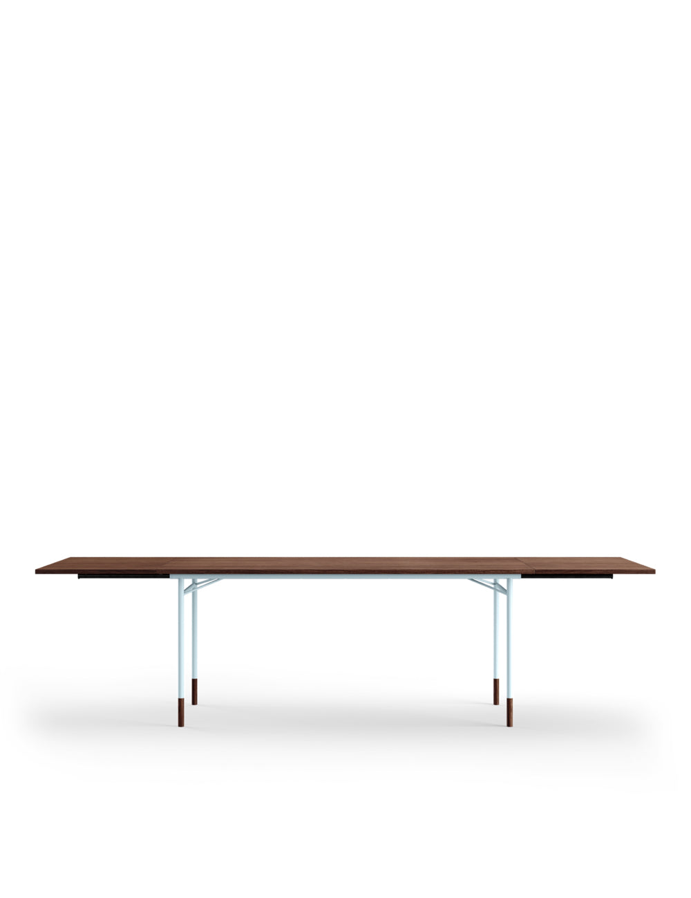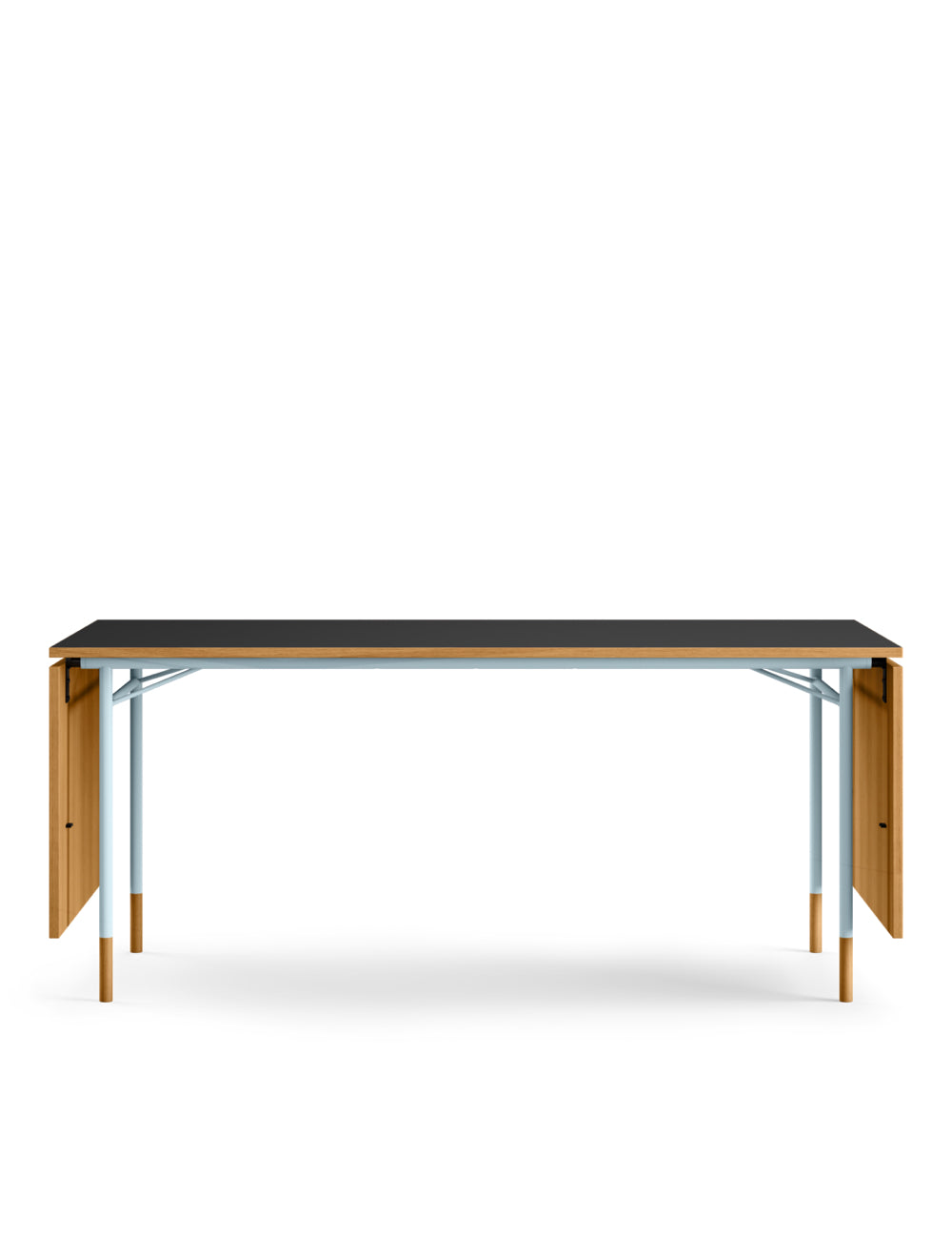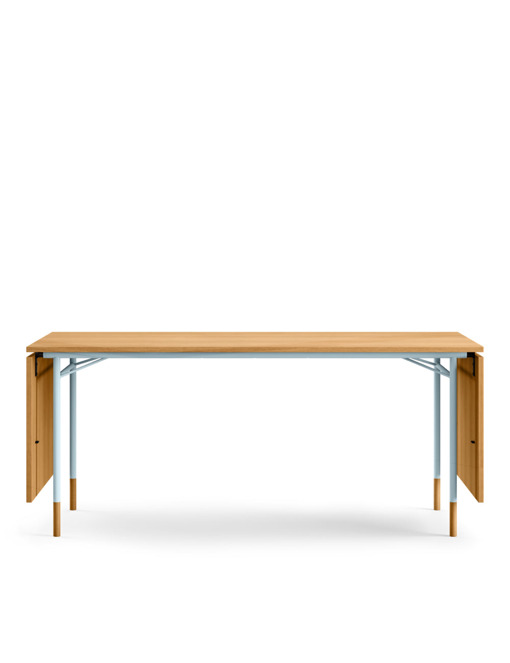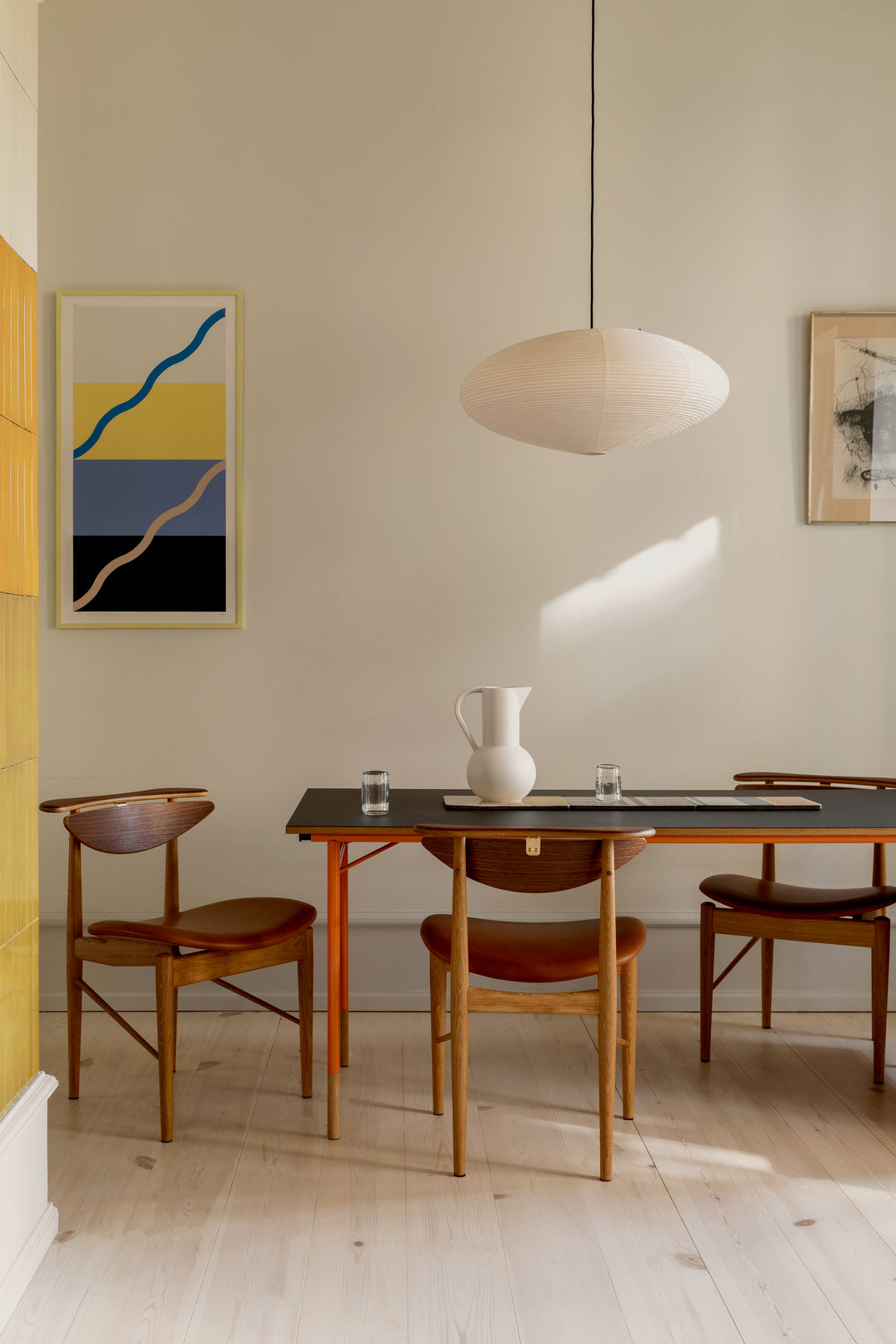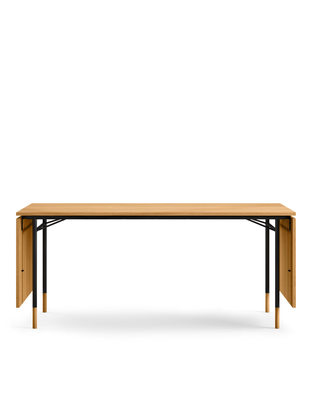 Create a calm, elegant, and practical dining room with Finn Juhl’s 1953 Nyhavn Dining Table. This table is not only easy to care for but also ages gracefully. With numerous customization options, it can be tailored to suit individual styles. Special mounts on the ends of the table allow for the leaves to hang vertically when not in use for extension, but they can also be completely removed.