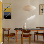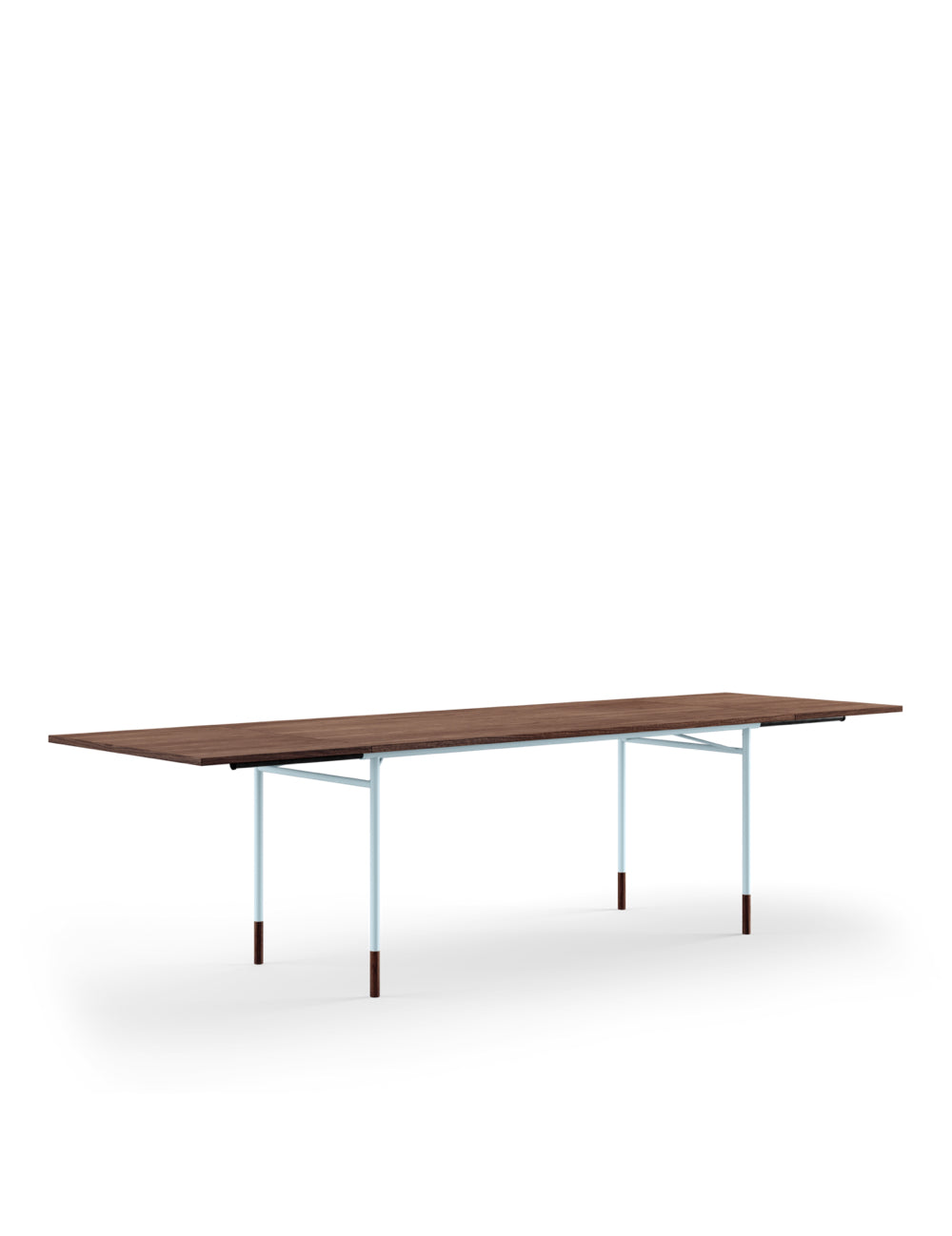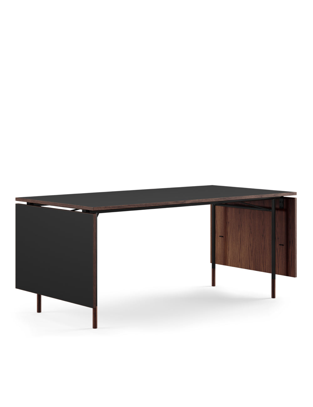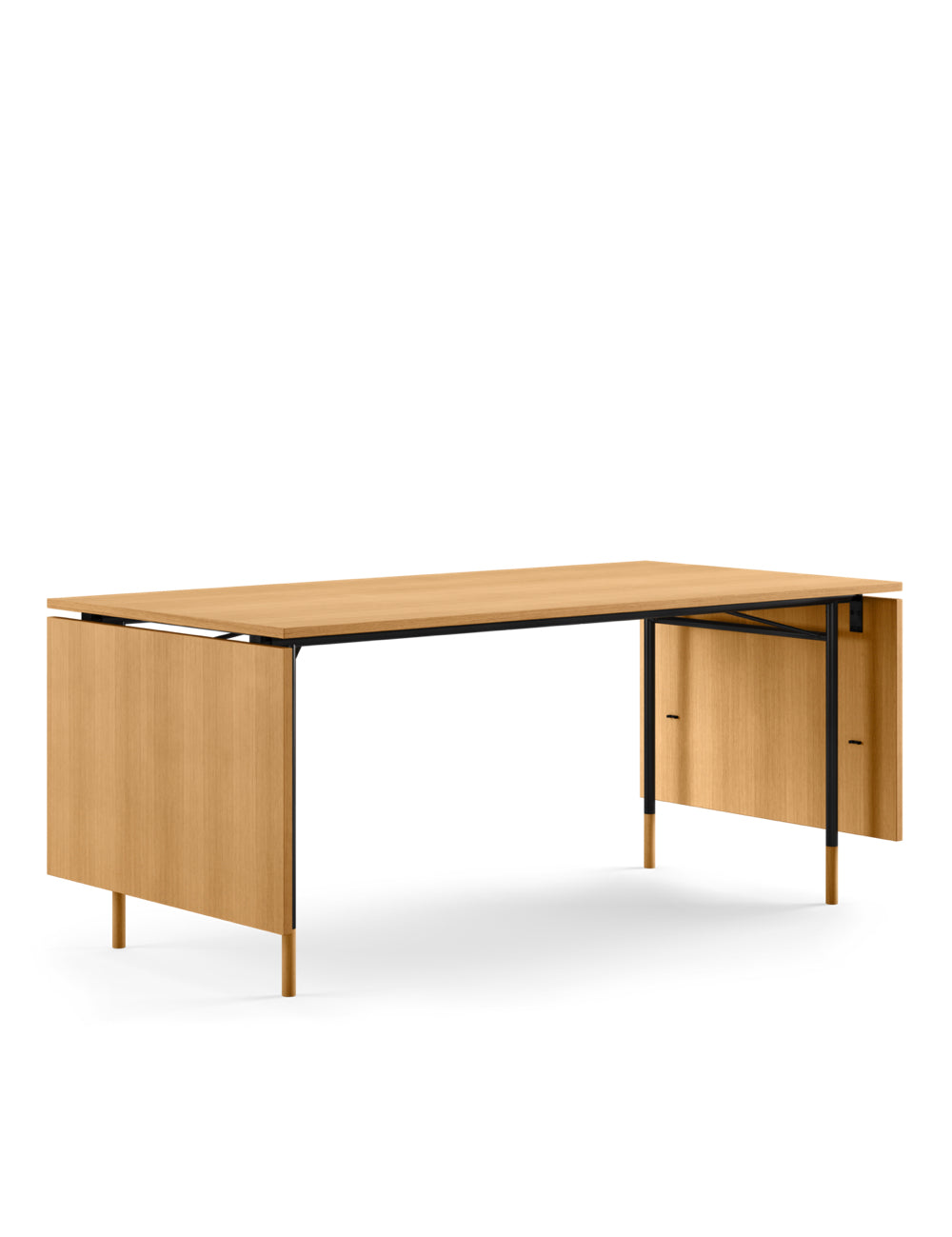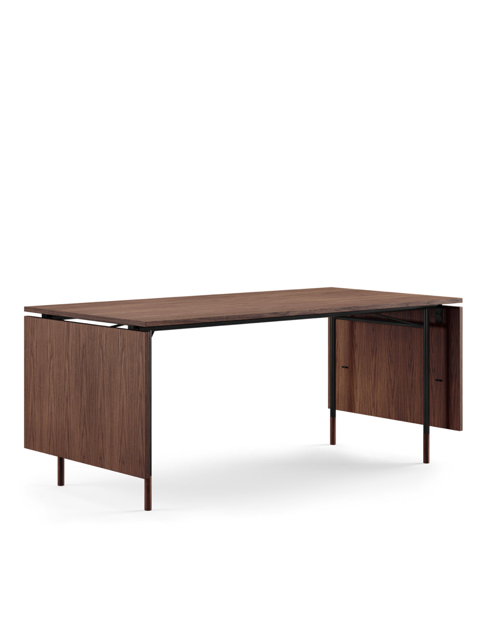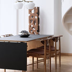 Create a calm, elegant, and practical dining room with Finn Juhl’s 1953 Nyhavn Dining Table. This table is not only easy to care for but also ages gracefully. With numerous customization options, it can be tailored to suit individual styles. Special mounts on the ends of the table allow for the leaves to hang vertically when not in use for extension, but they can also be completely removed.