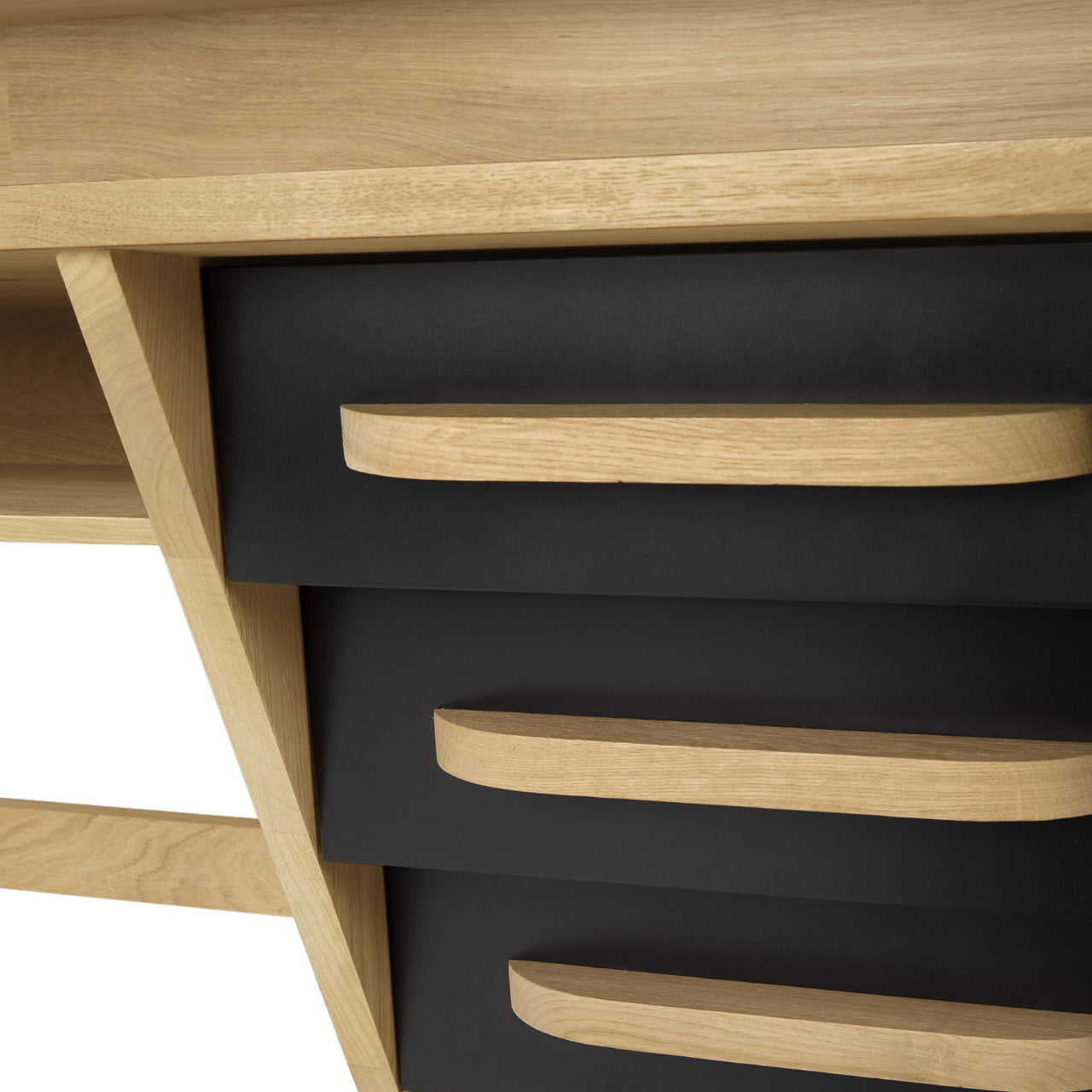 Crafted from solid oak with a durable hard wax oil finish, the Ethnicraft Origami Desk offers a generous work surface paired with five built in drawers that keep essentials organized and close at hand, ensuring that functionality enhances productivity rather than detracts from it.