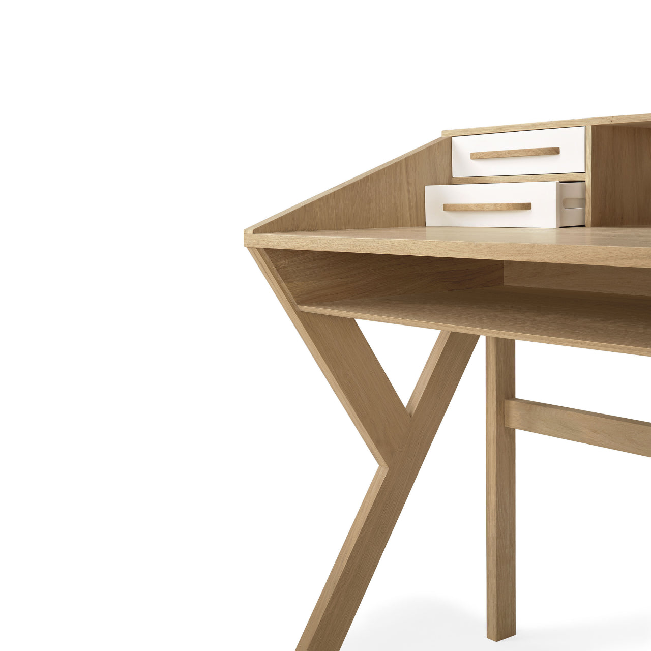 The Origami Desk by Ethnicraft brings a retro inspired silhouette and practical workspace design into modern interiors, blending purposeful storage with a refined aesthetic that defines Ethnicraft’s interpretation of Scandinavian design. The Ethnicraft Origami Desk draws on a nod to 60s design cues, reinterpreted through contemporary proportions and clean lines that make it ideal for home offices, study areas, or multifunctional living spaces.