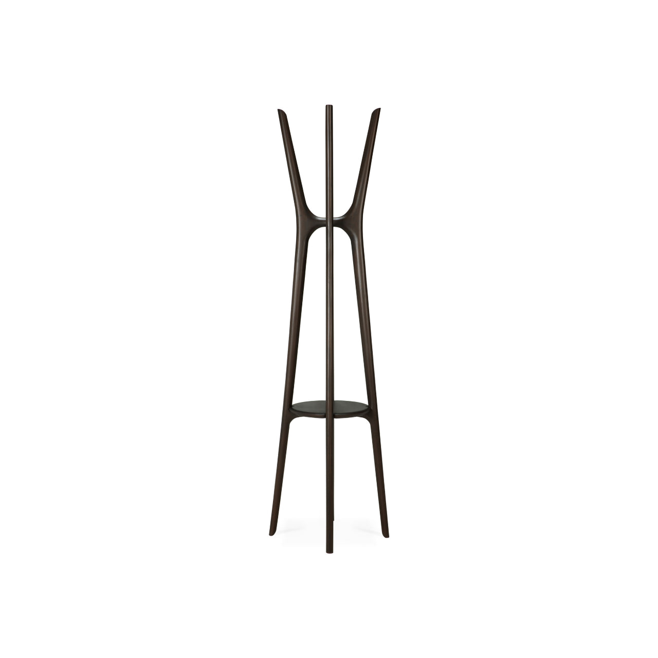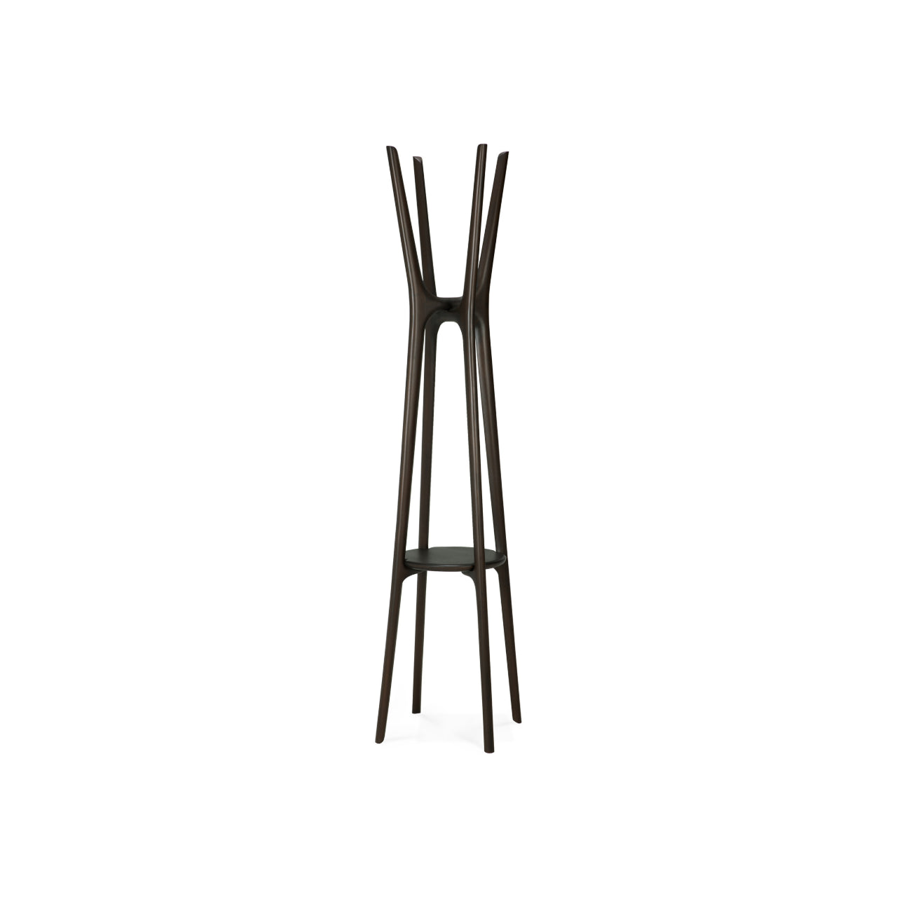 Designed by Alain van Havre, the coat stand reflects the organic language of the PI collection with rounded geometry and natural flow. Crafted from solid wood, it highlights authentic grain and tonal variation that add warmth without visual clutter. The structure feels substantial yet light, allowing it to integrate easily into modern and mid-century design interiors shaped by Scandinavian design principles.
