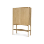 Crafted from solid oak with a hard wax oil finish, the PI Cupboard highlights the natural grain and unique character of each piece of wood. Each cabinet is hand-finished to preserve subtle variations in texture and tone, introducing a sense of individuality into the overall design. Its generous proportions make it ideal for storing table top ware, linens, or media components in dining rooms, living rooms, or entryways.