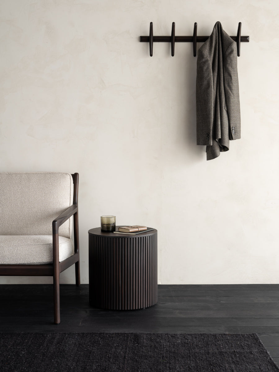 The PI Wall Coat Rack by Ethnicraft brings sculptural warmth and everyday utility to entryways and walls shaped by Scandinavian design. Designed to hold coats, hats, scarves, and bags, it transforms functional storage into a refined design element that complements minimalist interiors. The gently flowing wood forms reflect the PI collection’s emphasis on organic lines and thoughtful proportion.