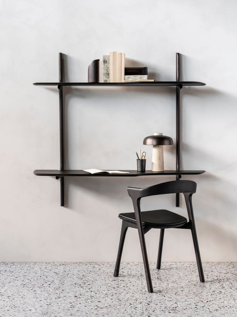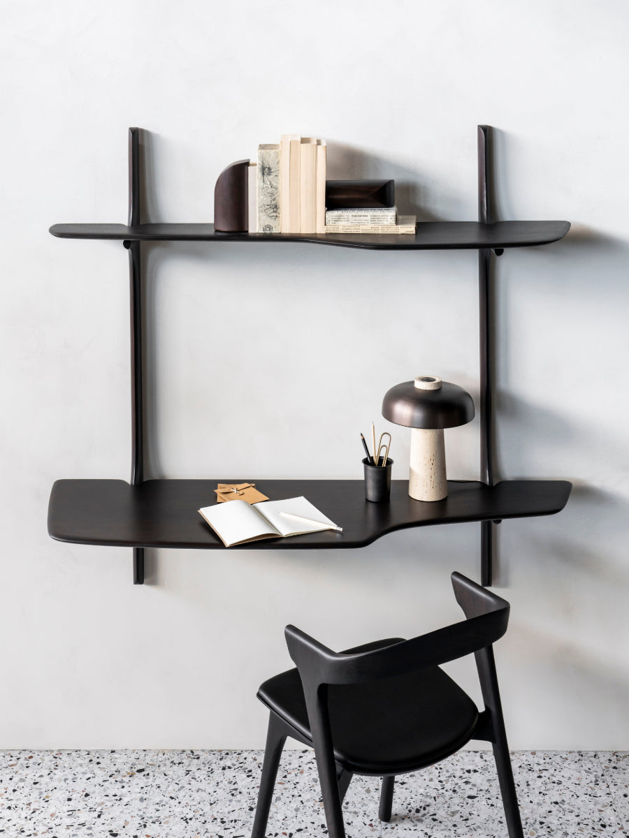 The PI Wall Mounted Desk by Ethnicraft brings purposeful design into compact interiors shaped by Scandinavian design. Its floating form provides a dedicated workspace while preserving floor area, making it ideal for apartments, nooks, or multifunctional rooms. The desk’s clean proportions and natural wood grain support interiors where simplicity and balance are essential.