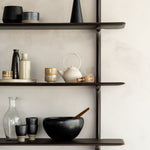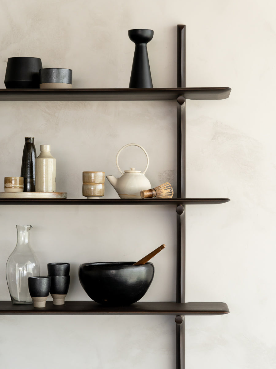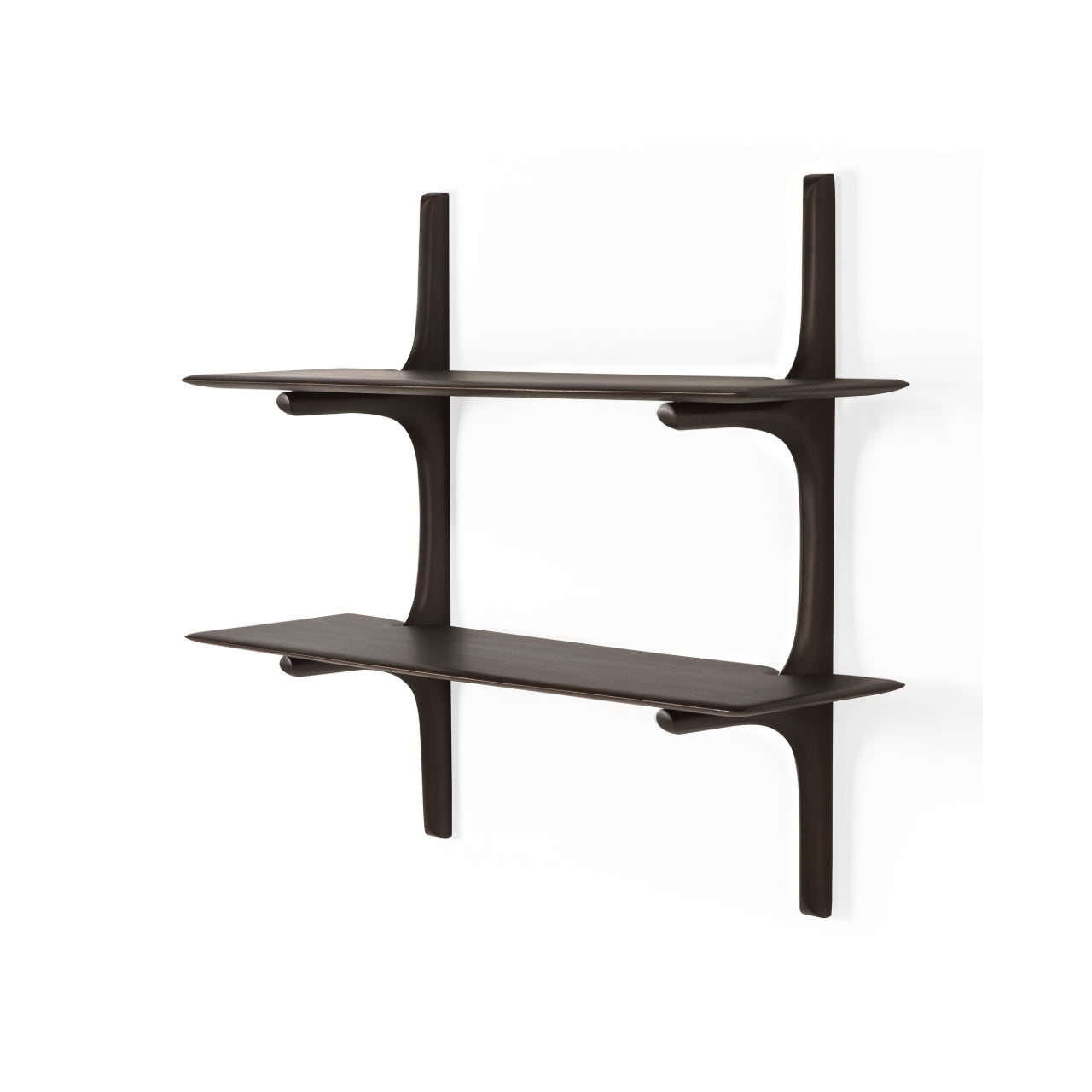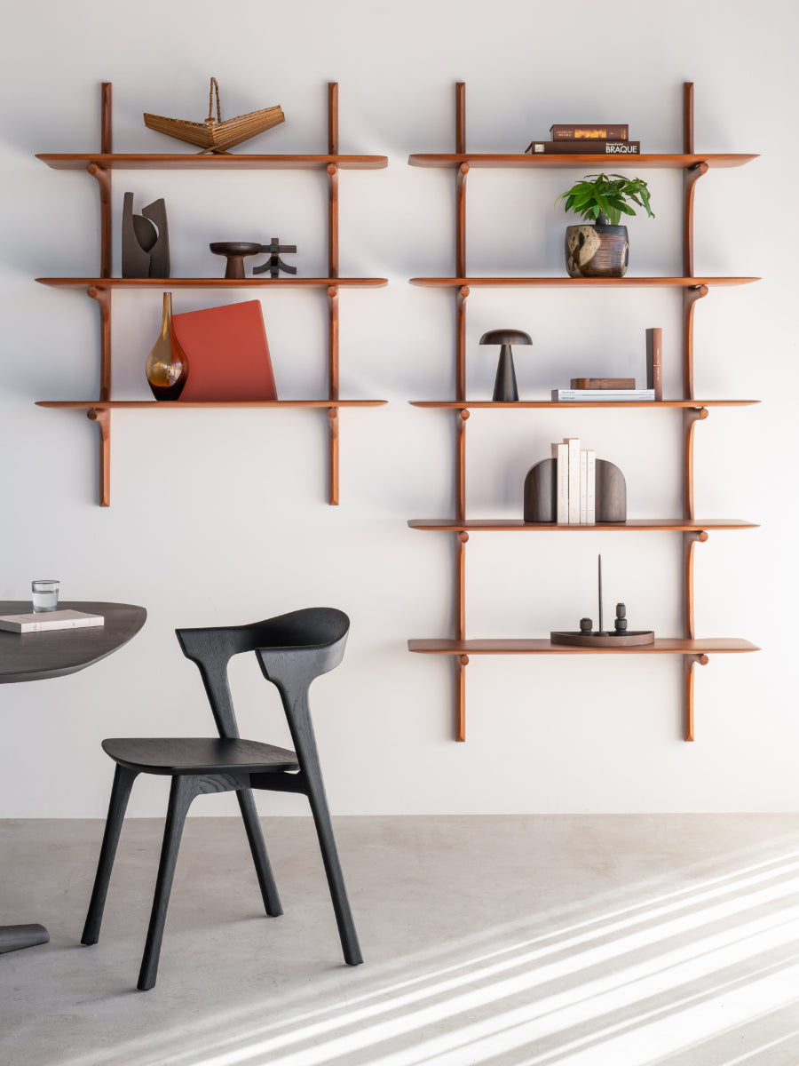 Handcrafted from carefully selected solid wood—available in mahogany, dark brown mahogany, or oak—each piece is finished to highlight the distinct grain and texture of the material. The shelf offers an elegant platform for displaying books, treasured objects, and décor with a sense of openness and ease. Whether mounted alone as a floating accent or arranged in multiples for a dynamic composition, it creates a calm yet expressive focal point. The result is a harmonious blend of organic shape and understated geometry.