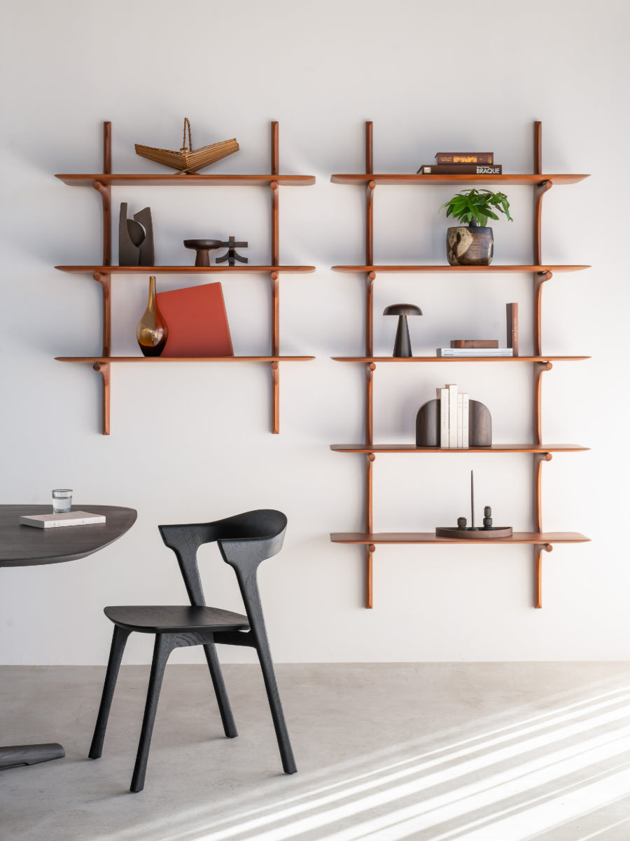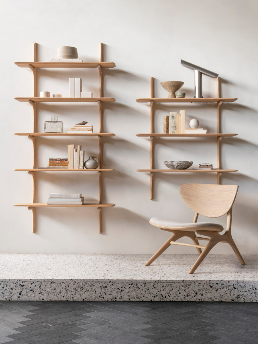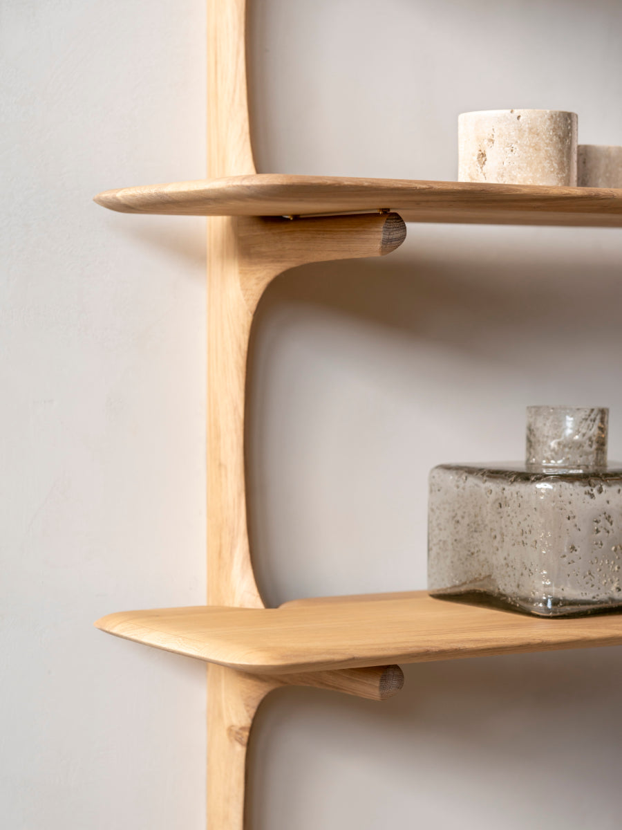 The PI Wall Shelf by Ethnicraft redefines wall storage with a sculptural character that blends practical display space with artistic expression. Its soft curves and clean lines celebrate the natural beauty of solid wood, making it a refined addition to interiors inspired by Scandinavian design principles. Designed by Alain van Havre, the shelf transforms everyday organization into a visually striking feature. It brings warmth and clarity to living spaces through its thoughtful balance of form and function.