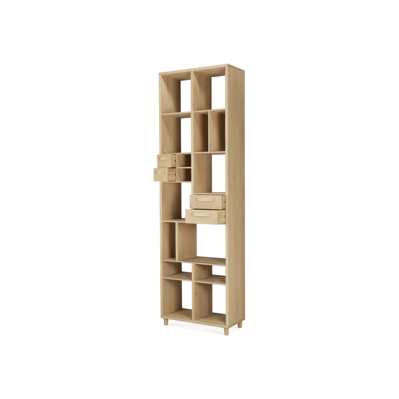 Crafted from solid oak with a hard wax oil finish, this storage rack embodies the enduring character of natural material while remaining robust enough for daily use. Its geometric rhythm and thoughtful scale contribute to Scandinavian design environments that emphasize longevity, proportion, and quiet sophistication.