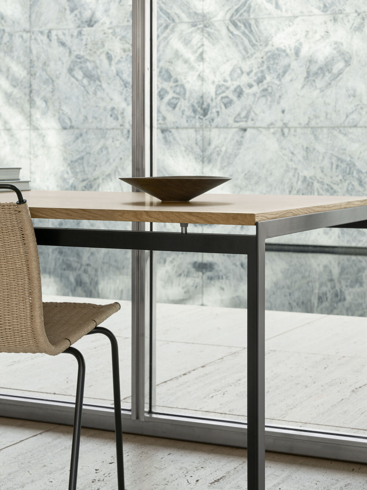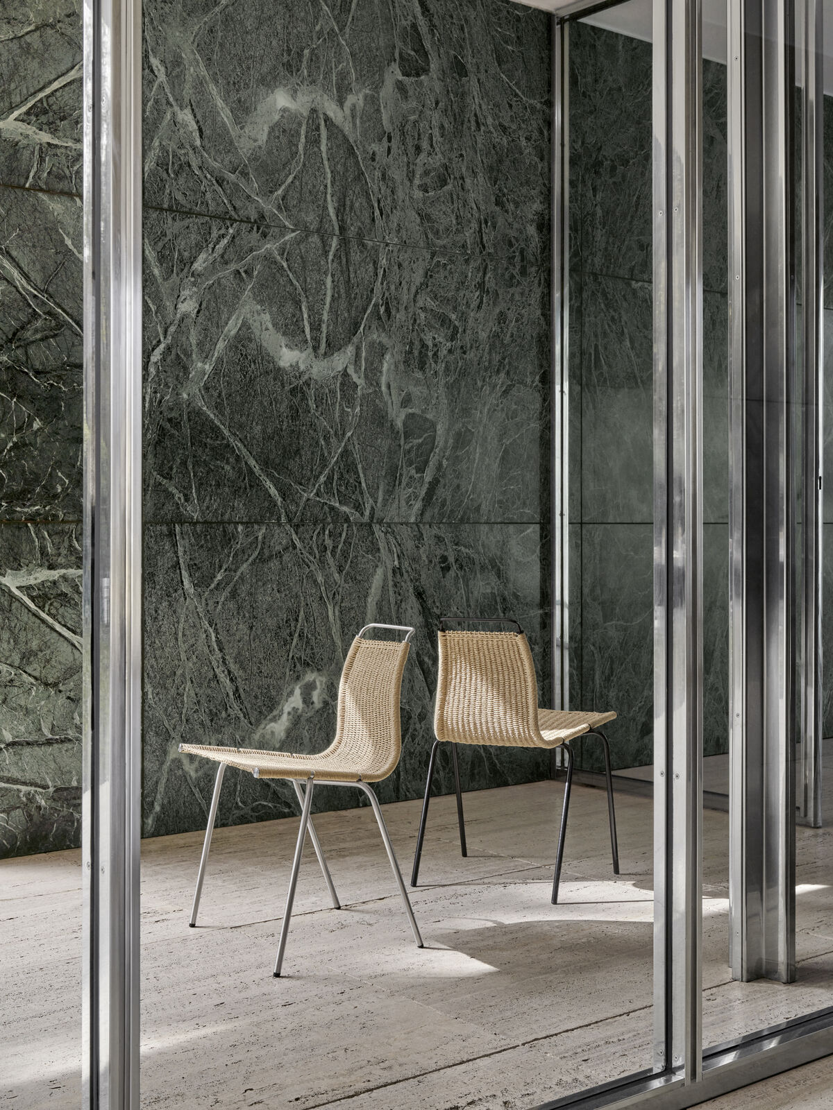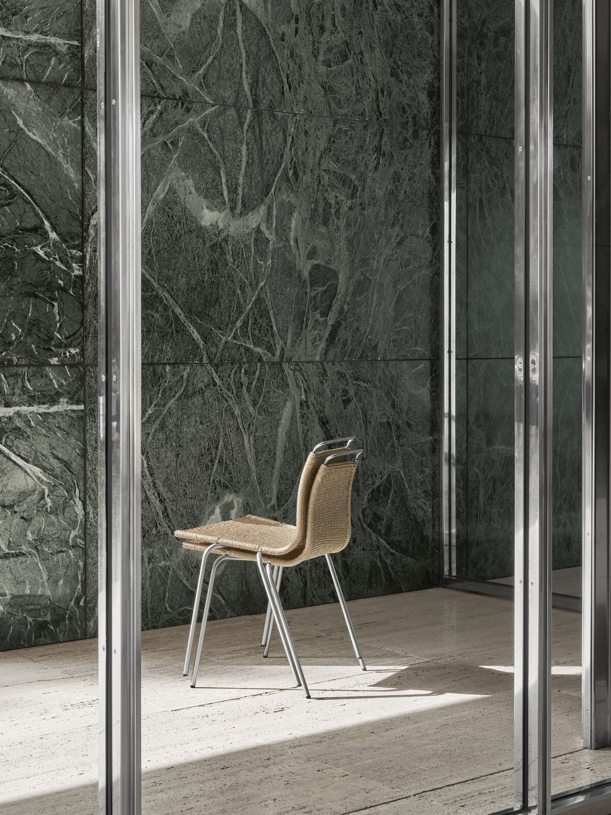 Originally made with a wicker seat, the PK1 is now available in an updated version featuring an FSC-certified hand-woven paper cord seat. This sustainable material adds warmth and texture, and is equally striking when viewed from the front or back. The paper cord weaving has been meticulously recreated by Carl Hansen & Søn, following Kjærholm’s original specifications. Each seat is crafted by hand, requiring 15 hours of skilled work by a trained artisan.