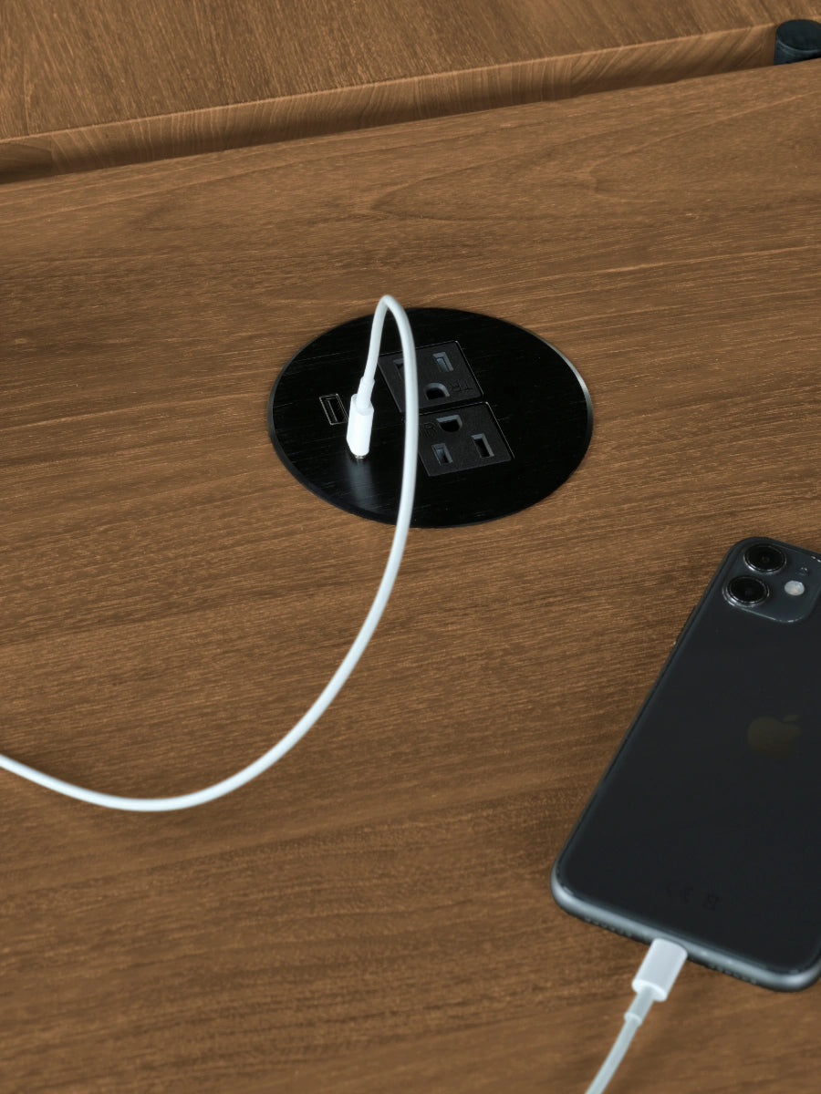 The Ethnicraft Power Circle brings functional convenience into workspaces shaped by Scandinavian design without compromising a clean, thoughtfully curated desktop aesthetic. Designed to fit into the cable management system of Ethnicraft desks, the Power Circle provides an integrated power supply along with USB-A and USB-C charging ports that help maintain an uncluttered surface while supporting modern work habits.