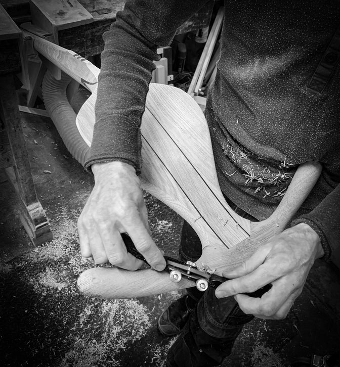 The pine version comes with a teak seat. The oak version has optional oak, wengé or teak seat, and the maple version has optional maple or wengé seat.