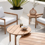 Made from solid teak wood, the table is suited for year-round outdoor use and develops a natural patina over time. Its durable construction and considered proportions reflect Scandinavian design values that emphasize longevity and adaptability.