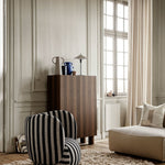 The clean and classic expression of the striped textile has been designed in partnership with Louisiana Museum of Modern Art, and beautifully contrasts the soft, voluminous curves of the Rico Lounge Chair.