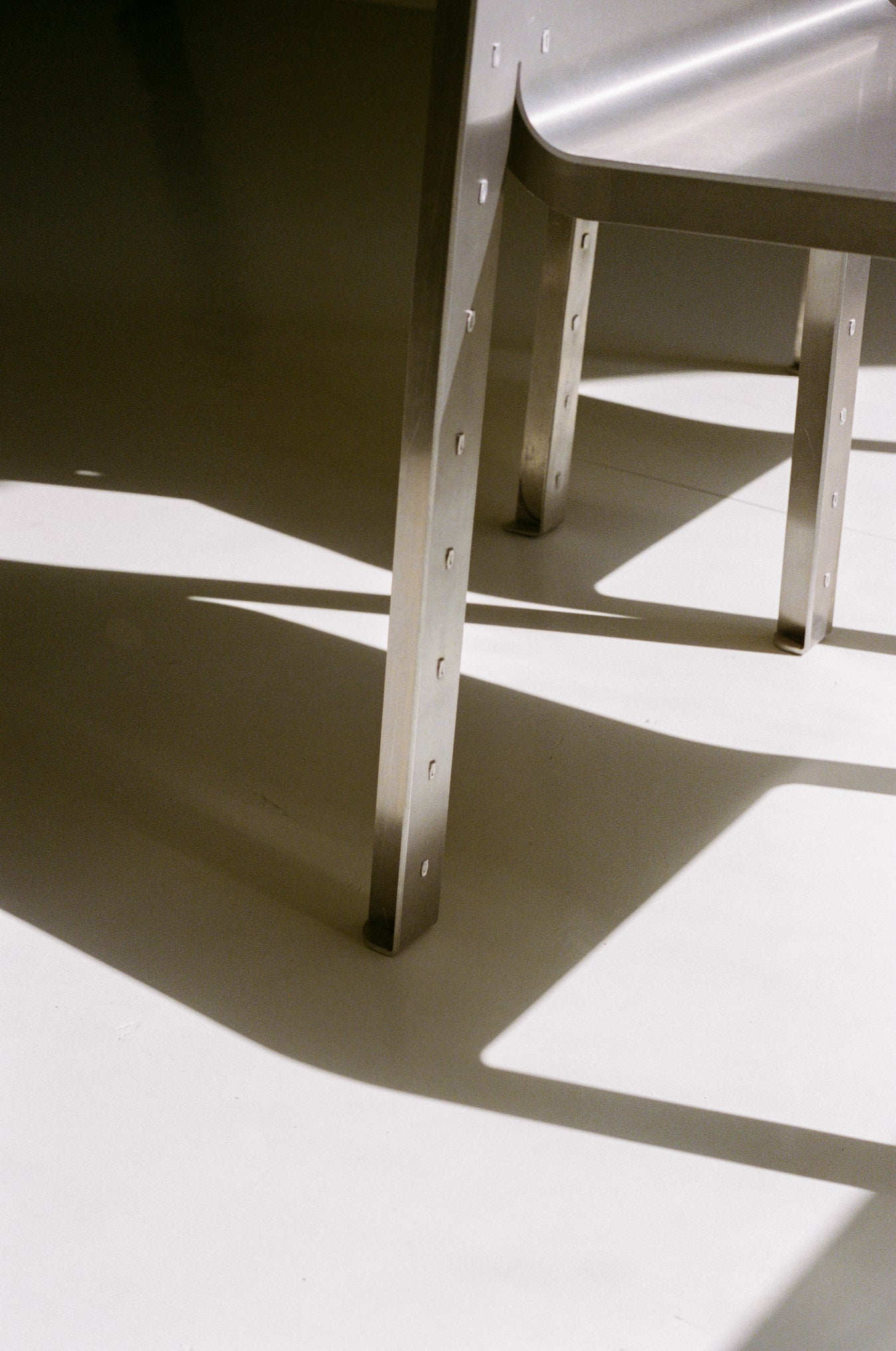 With its exposed construction and unfinished aluminum surfaces, the FRAMA Rivet Chair not only celebrates the integrity of its materials but also allows each piece to develop a rich patina over time—reflecting the environment in which it lives.