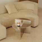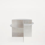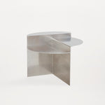 The Rivet Side Table is a versatile furniture piece suitable for any room. Its circular top is divided into three different levels, creating a dynamic surface. Based on a riveting technique suitable for making perpendicular joints between separate, laser-cut raw aluminum sheets, the table is put together by hand using a hammer in a cold-forming assembly process developed by designer Jonas Trampedach in 2011.