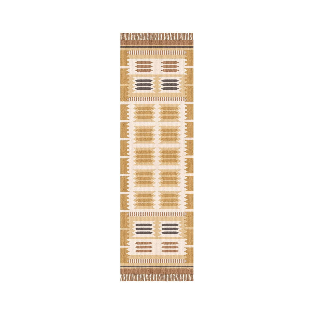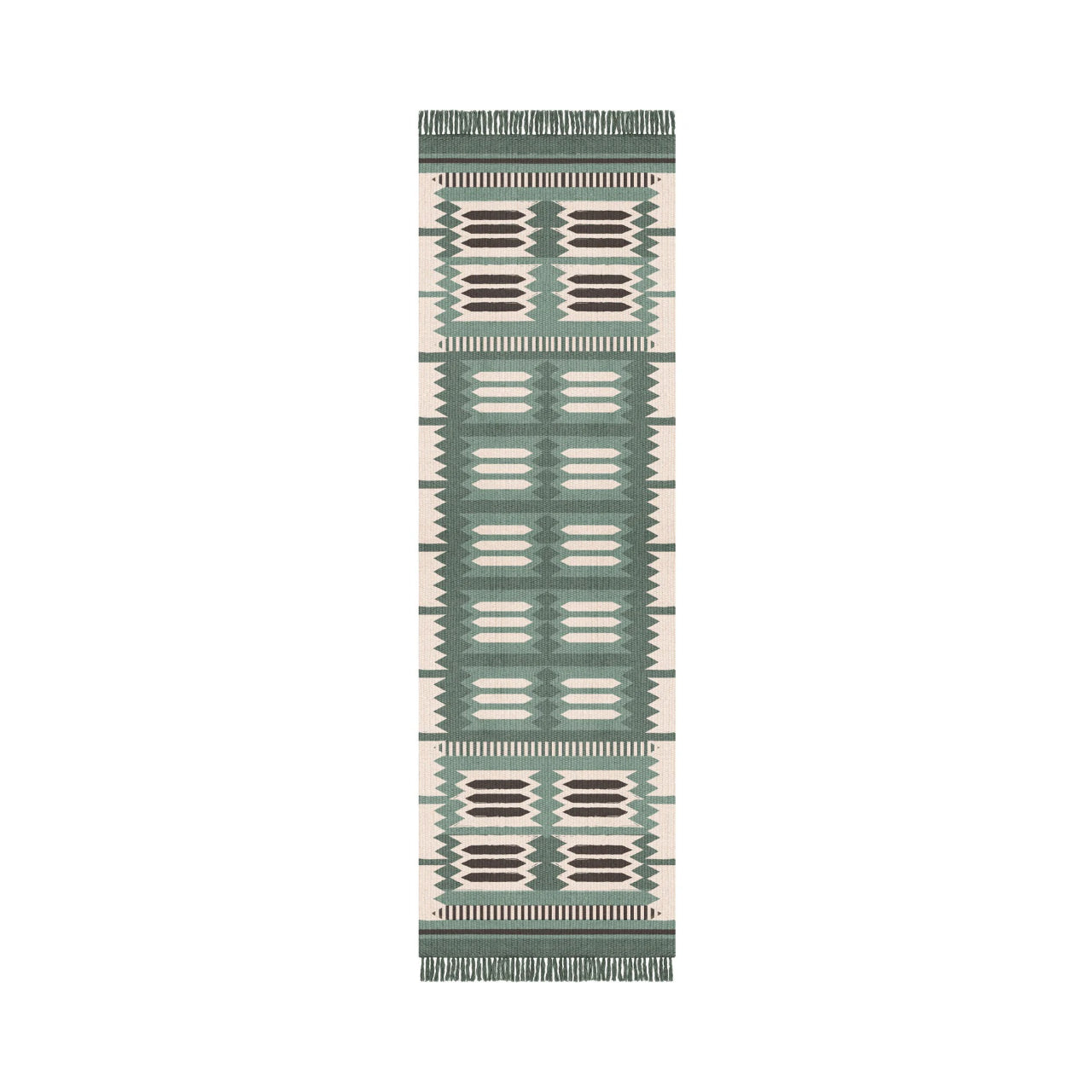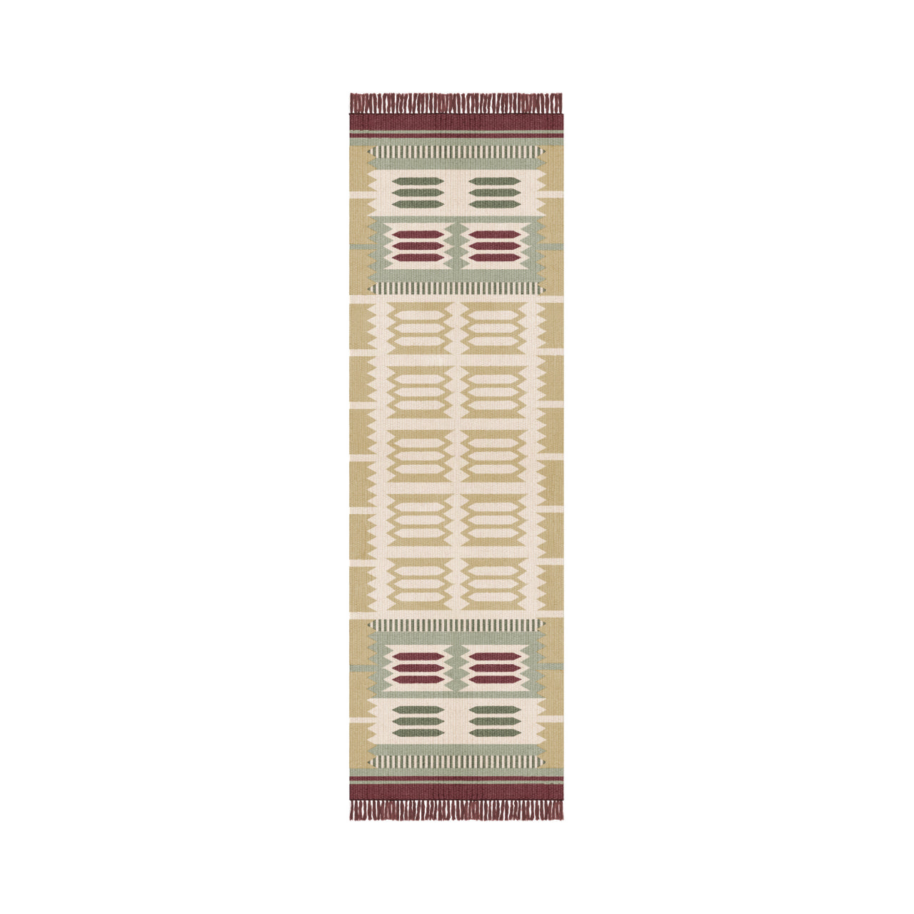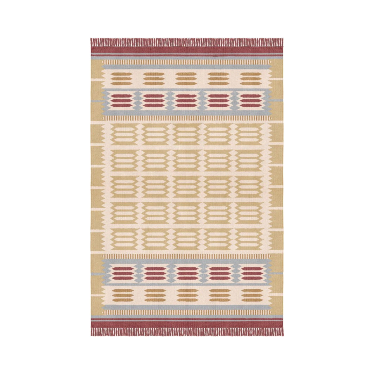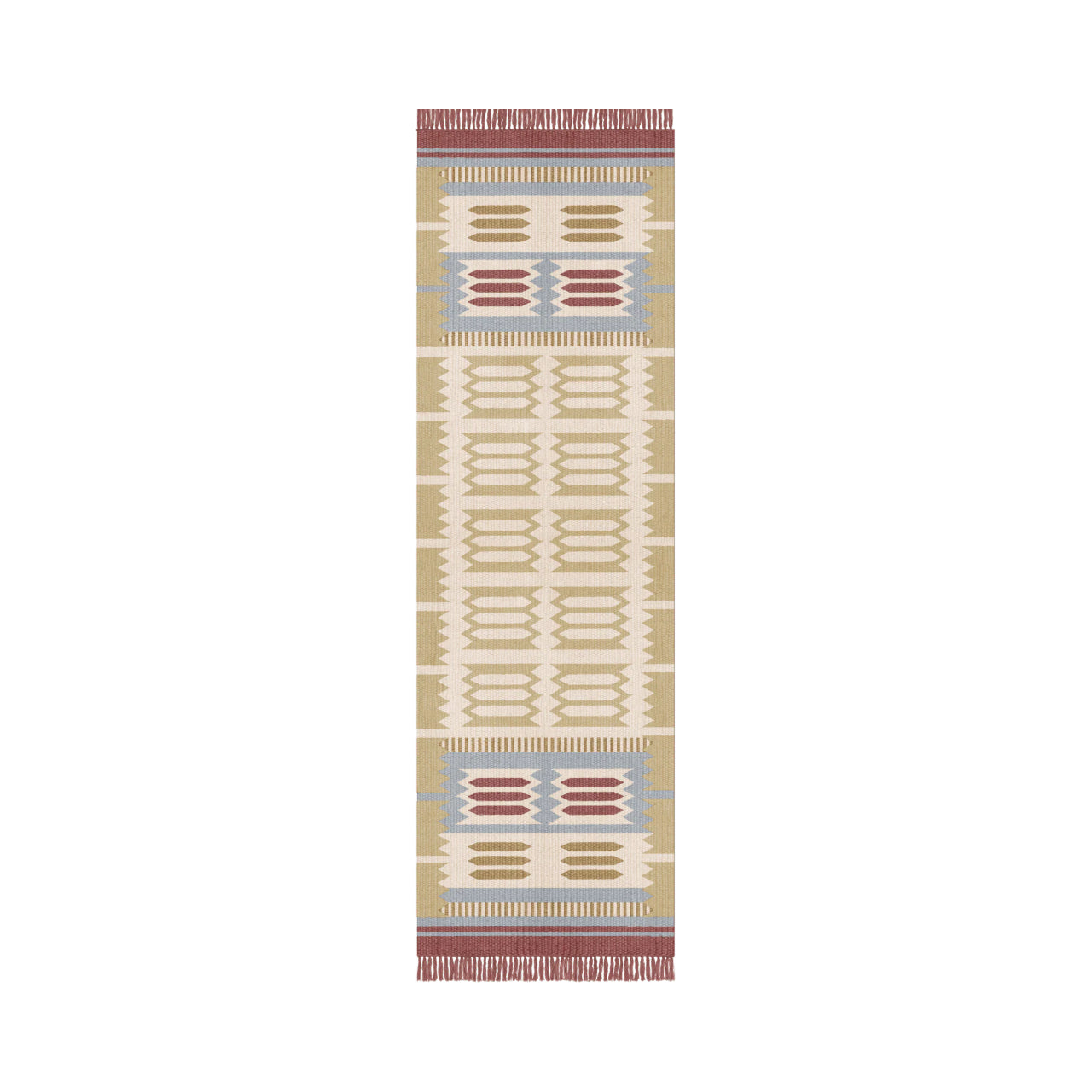 The Röllakan Hilma Wool Rug reflects Scandinavian design through a precise geometric composition inspired by Swedish folk traditions, where pattern becomes a structured visual language. Handwoven with a weft of 100% wool and a warp of 100% cotton, it carries forward Scandinavian design by balancing heritage references with a refined, modern expression.