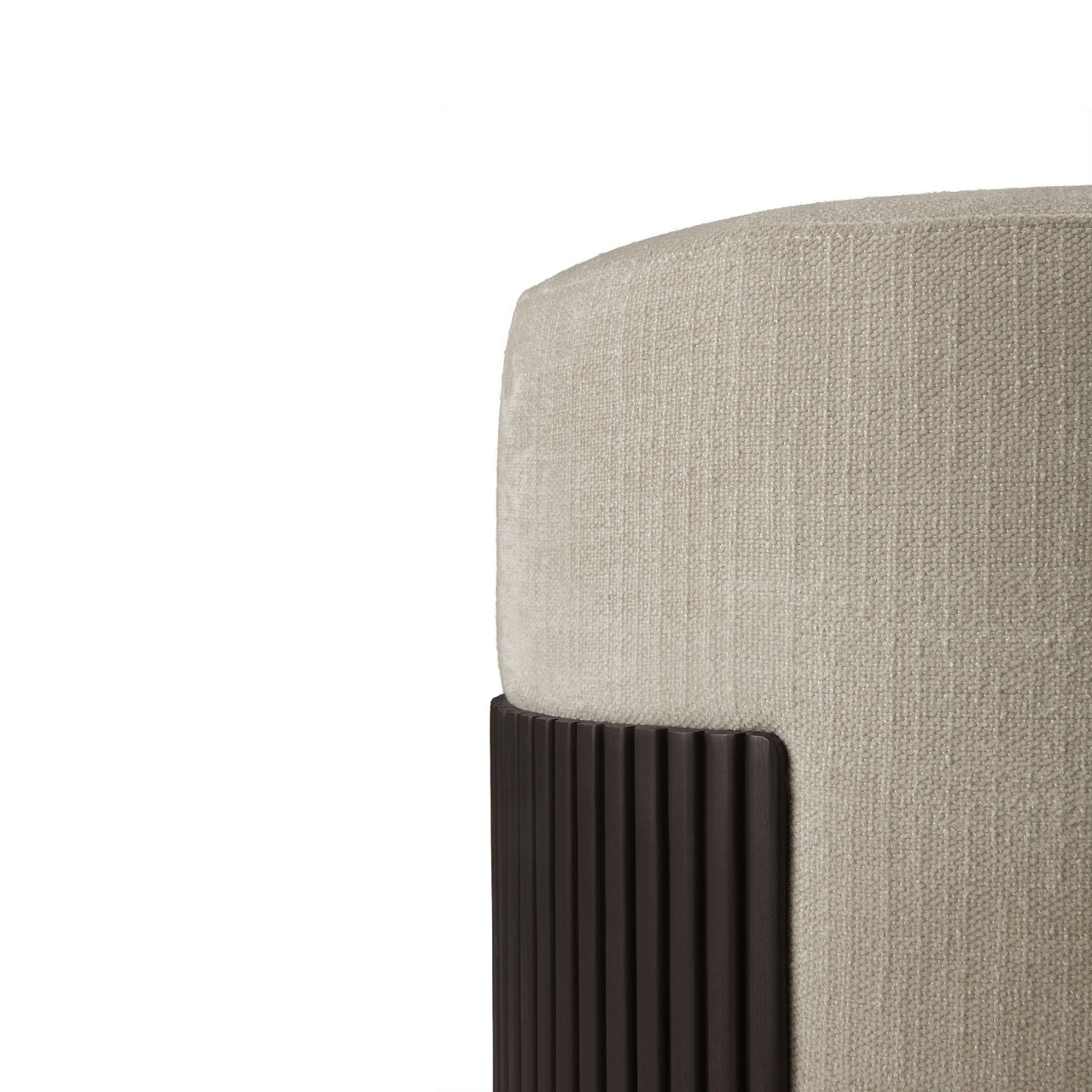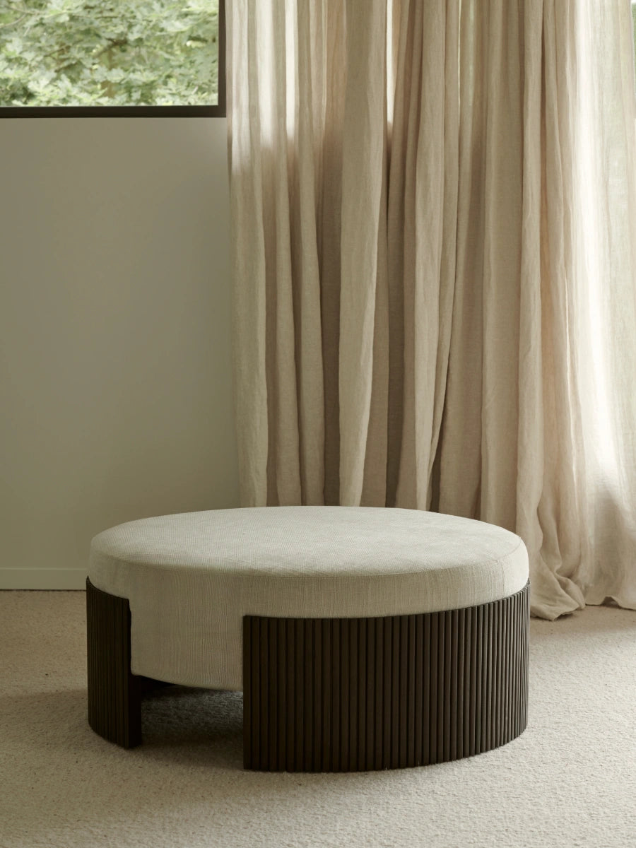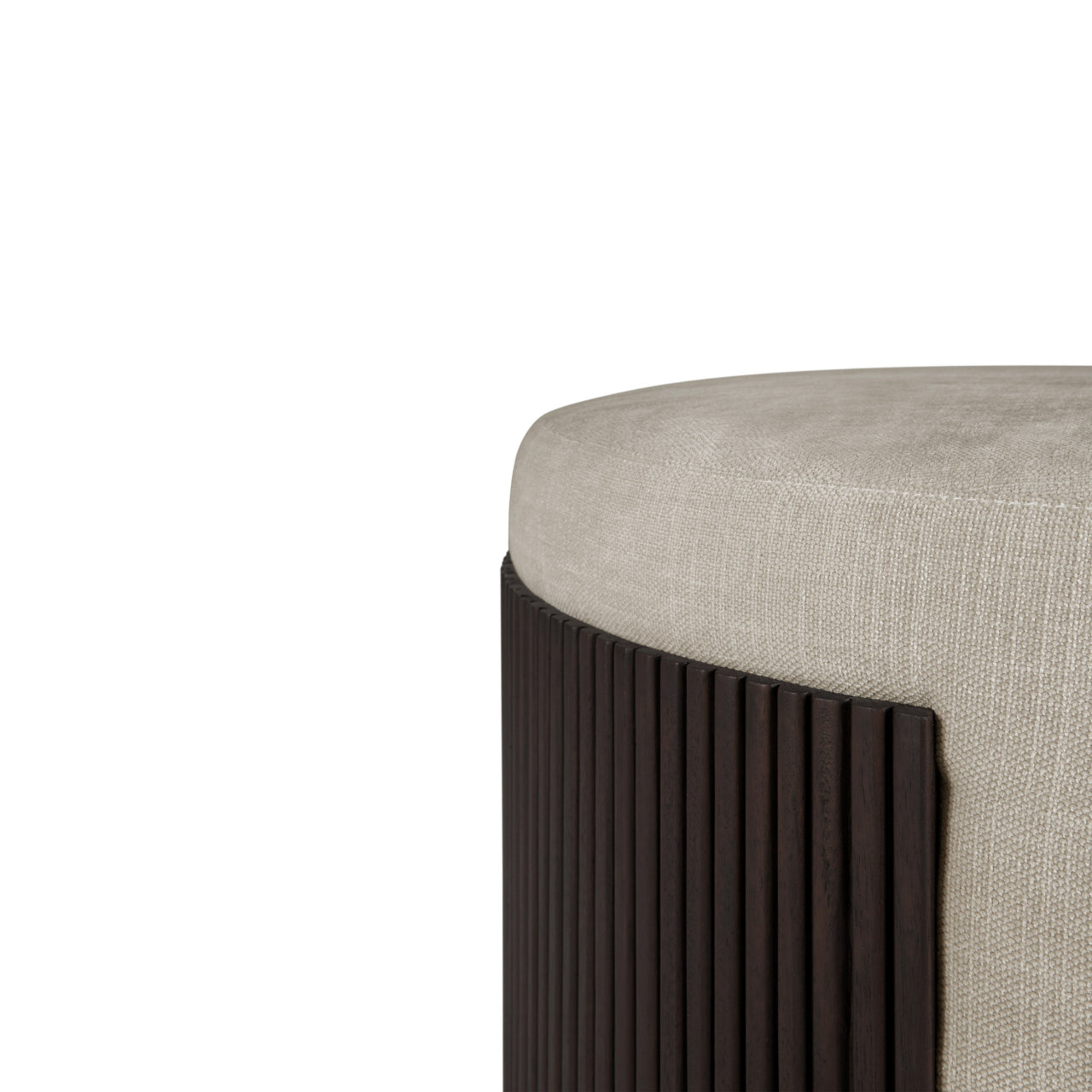 The Roller Max Pouf by Ethnicraft brings relaxed comfort and sculptural rhythm to living spaces with design rooted in Scandinavian design principles that value texture, balance, and purposeful form. Its cylindrical silhouette defined by vertical wooden sticks creates a dynamic presence while remaining calm and composed.