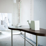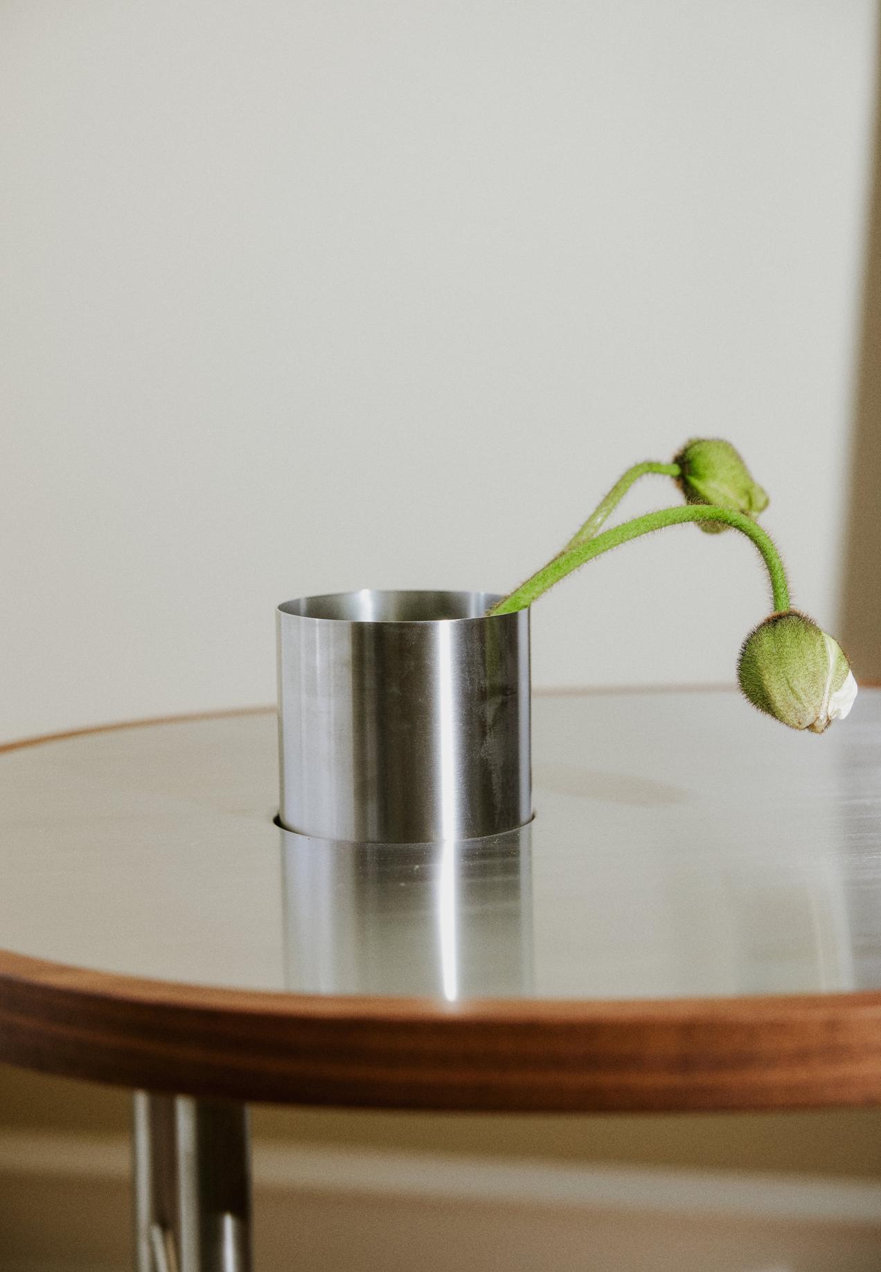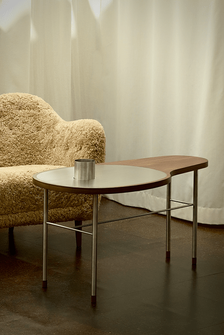 The Ross Coffee Table by Finn Juhl is a striking example of mid-century Danish design that now feels unmistakably contemporary. Originally created in 1948 as a commissioned piece for Danish law professor Alf Ross, the Ross Coffee Table reflects Finn Juhl’s signature ability to infuse furniture with sculptural presence and subtle detail. The table is manufactured with a stainless steel frame and a wooden tabletop in walnut, featuring a steel inlay. , the Ross Coffee Table by House of Finn Juhl remains a distinctive piece within the world of Scandinavian furniture, balancing organic forms with elegant functionality. This piece comes with the option to add on a silver vase.