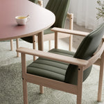There are many details to both versions of the chair, but the main attraction is probably the connection between the backrest and the horizontal leg stretcher, this subtle detail exemplifies the brilliance of Dysthe's design. The overall style of the chair, with voluminous upholstery and great comfort makes this chair a true 1960s classic. Now it's finally back in production!