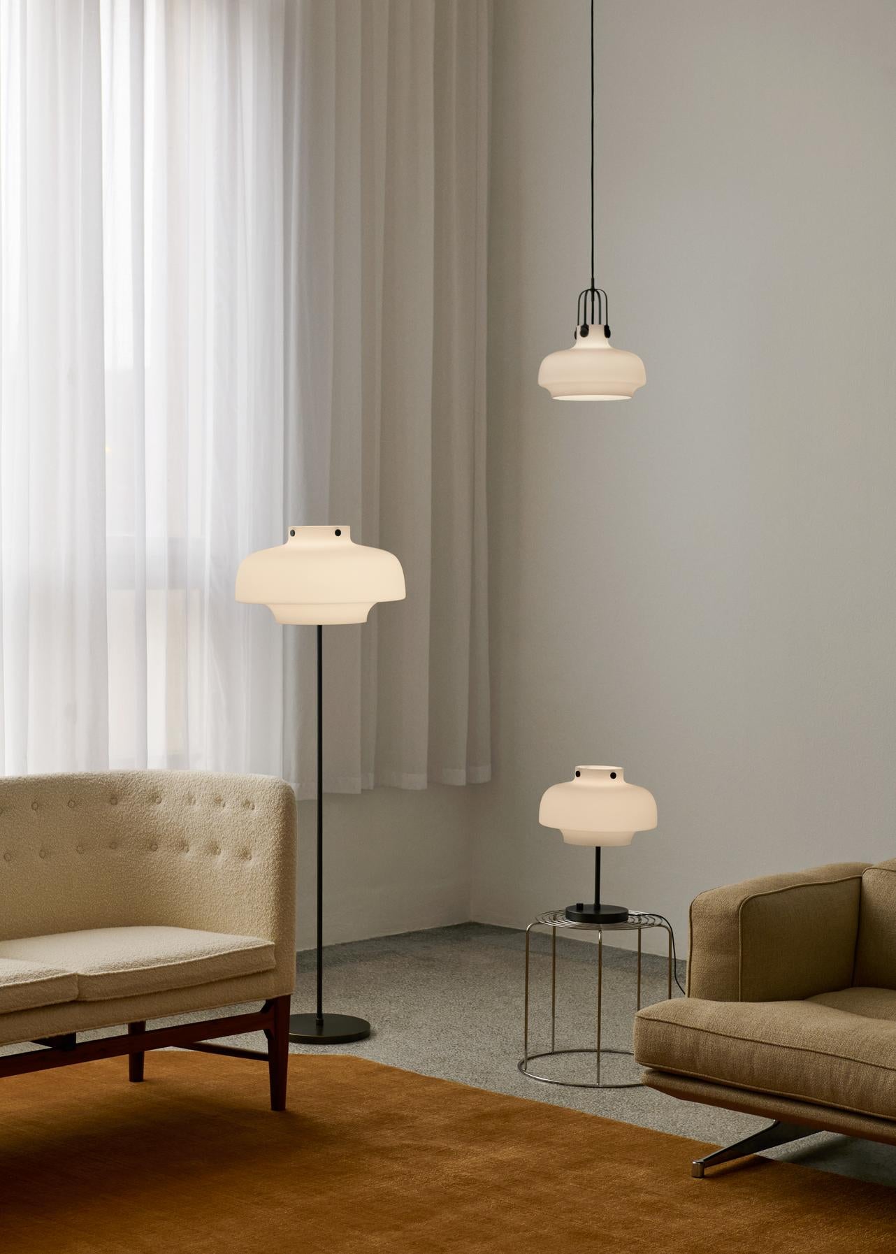 Space Copenhagen's goal with this series was to create a lamp that exudes a simple industrial aesthetic without sacrificing elegance. Blending the classic and the modern, the maritime and the industrial, the result is a lamp that embodies an intriguing contrast. The Copenhagen series consists of a table lamp, a floor lamp, and a pendant in three sizes.