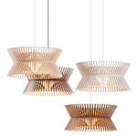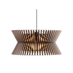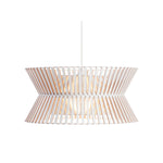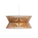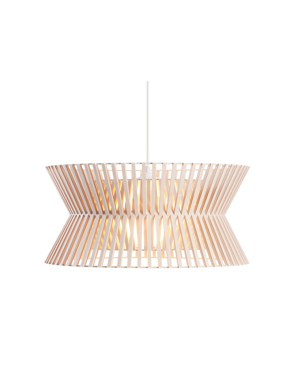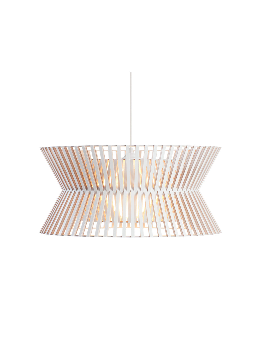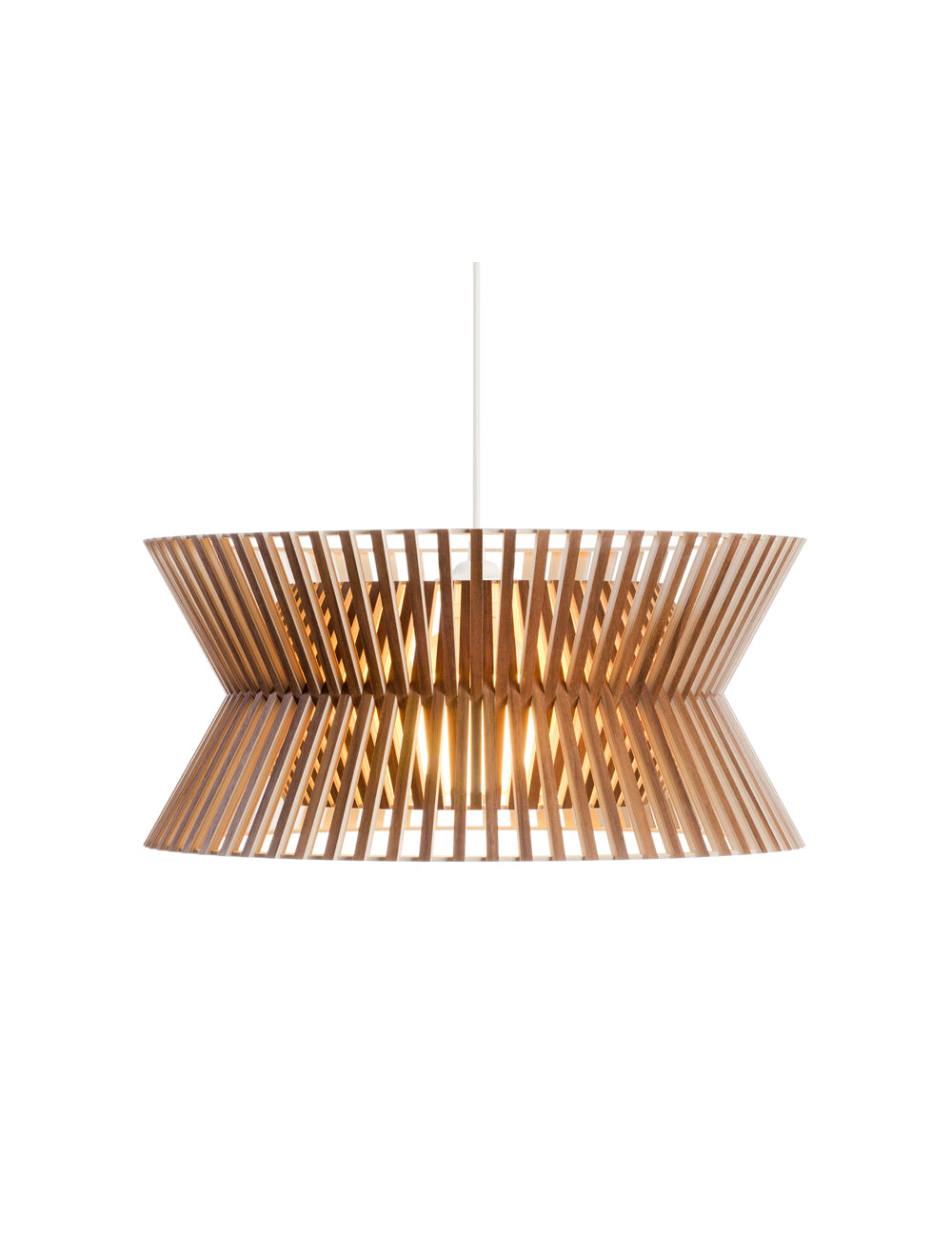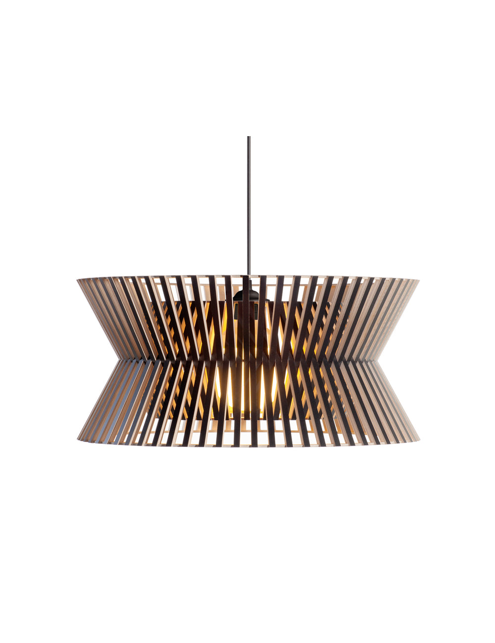 The Kontro 6000 pendant lamp by Secto is a new interpretation of the chandelier. The openness of the design spreads light widely with a clearly visible texture produced by the open wood slats on all sides. The lamp is ideal for people to gather around above a table providing a warm, cozy light. The Kontro can stand alone or be paired with the smaller Victo 4251, Secto 4200 and 4203 Puncto to dramatic effect. All Secto lighting produces a brilliant glow across any room.