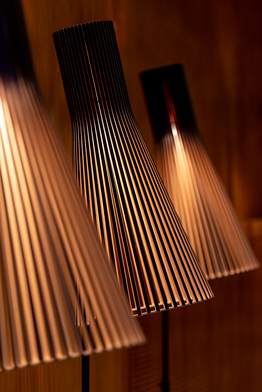 The finishing options for Secto lamps are untreated natural birch, white or black laminate or waxed walnut veneer. Contact Nørdikka Collective for information on light distribution curves and technical details on particular models.