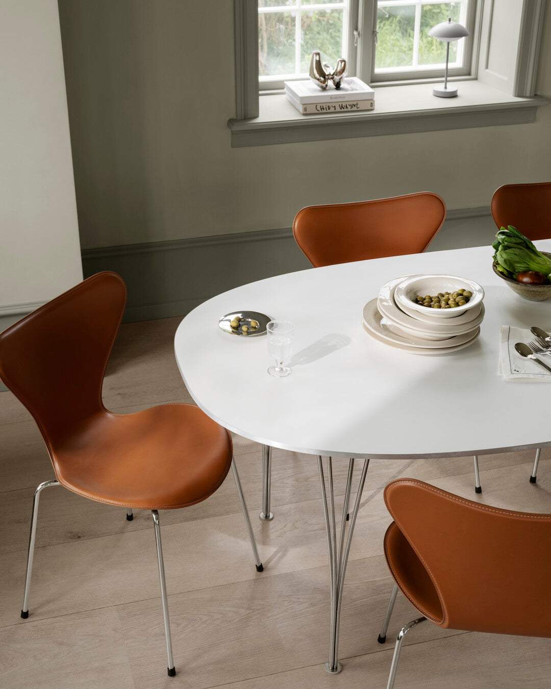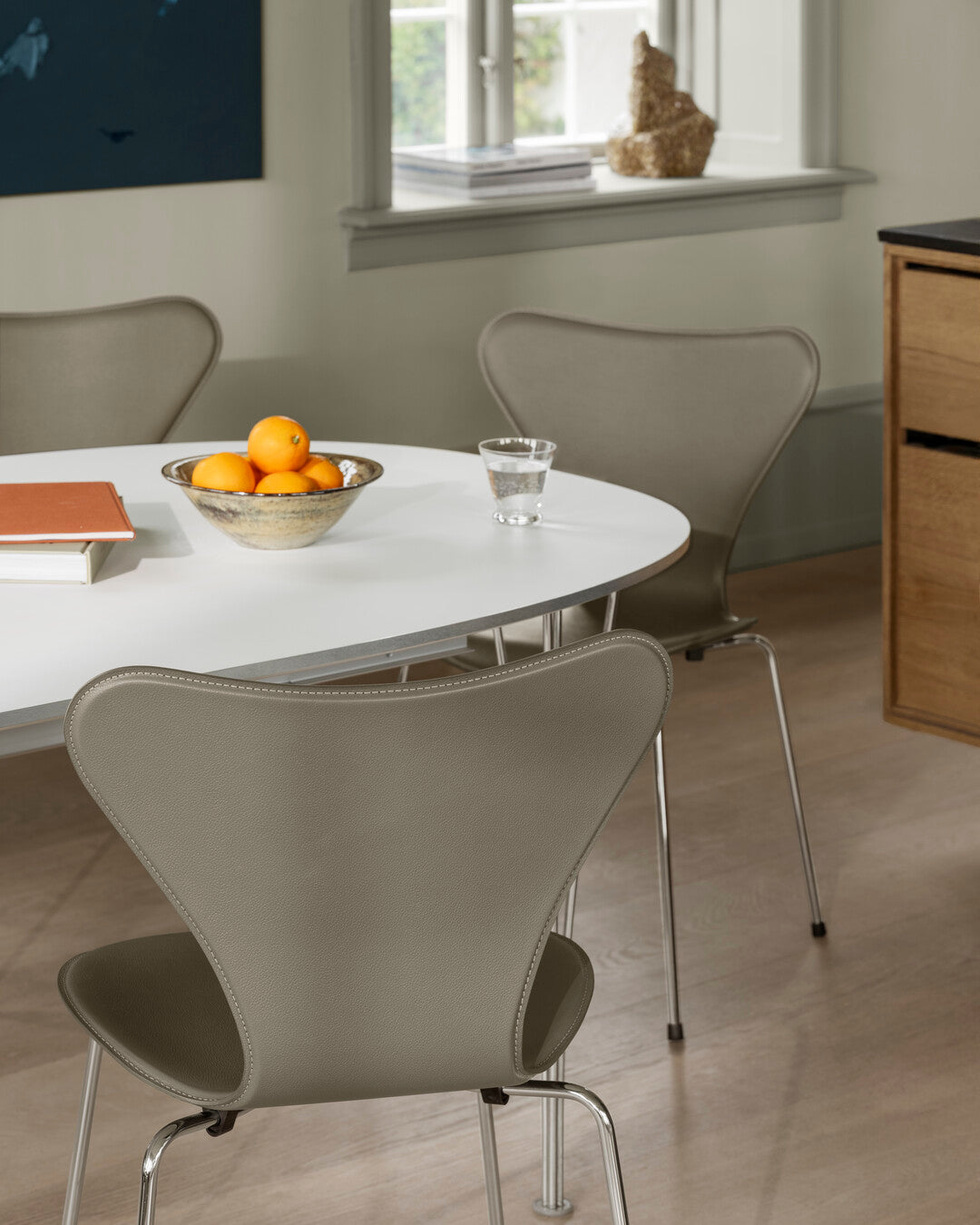 Discover the Series 7™ chair by Fritz Hansen, a true icon of modern furniture design. Designed by Arne Jacobsen in 1955, the Series 7™ chair by Fritz Hansen combines timeless style, versatility, and comfort. Crafted from nine layers of pressure-moulded veneer, the Series 7™ chair is strong, flexible, and durable while maintaining a sleek, elegant profile. Slim steel-tubed legs enhance its minimalist design, making the Series 7™ chair by Fritz Hansen easy to stack and perfect for any space. As the most popular design in Fritz Hansen’s chair collection, the Series 7™ chair embodies Jacobsen’s visionary approach to modern design. Explore the full Series 7™ collection by Fritz Hansen, available at Nørdikka Collective.