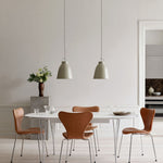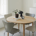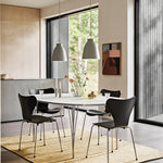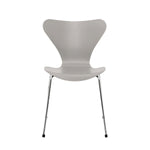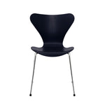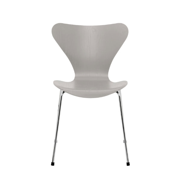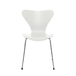 Also known as the Model 3107, the Series 7 chair features slim yet resilient steel-tubed legs that perfectly complement the curved seat shell. The legs extend just beyond the seat’s edge, allowing the chairs to be efficiently arranged in rows or stacked for practical storage. Discreetly mounted to a circular disc beneath the seat, the base enhances the clean, minimal aesthetic that defines Arne Jacobsen’s original vision for Fritz Hansen. The Series 7 can be customized with a lacquered or painted ash finish, while the base is available in black, gray, or chrome. For customization options, please contact our friendly and knowledgeable staff at info@nordikkacollective.com.