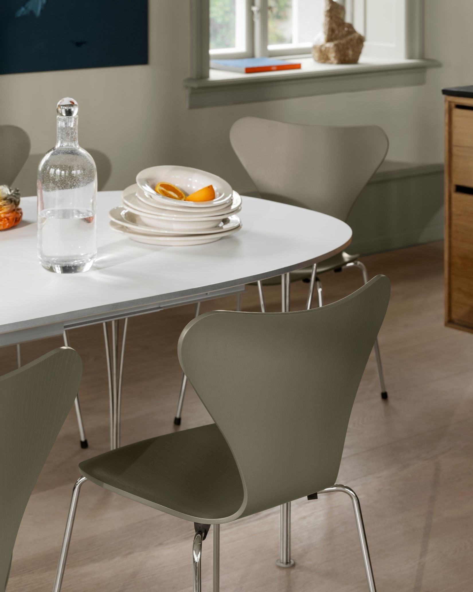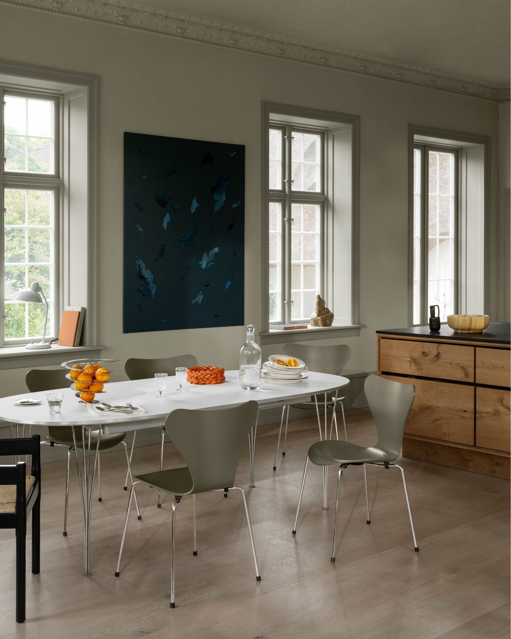 The Series 7 chair by Arne Jacobsen is one of the most iconic and best-selling designs ever produced by Fritz Hansen. First introduced in 1955, the Series 7 chair showcases Jacobsen’s visionary approach to modern furniture, with a sculptural silhouette that is both timeless and versatile. Crafted from nine layers of pressure-moulded veneer, the Series 7 chair achieves exceptional strength, flexibility, and durability, despite its slender and graceful form. It remains the most popular chair in the Fritz Hansen collection and a true symbol of Danish design excellence.