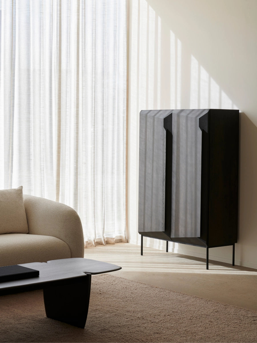 The Stairs Cupboard by Ethnicraft brings sculptural rhythm and refined storage to contemporary interiors shaped by Scandinavian design principles that value simplicity, harmony, and purposeful form. Its distinctive stepped silhouette creates visual movement while providing generous concealed storage for dinnerware, linens, or living-room essentials.