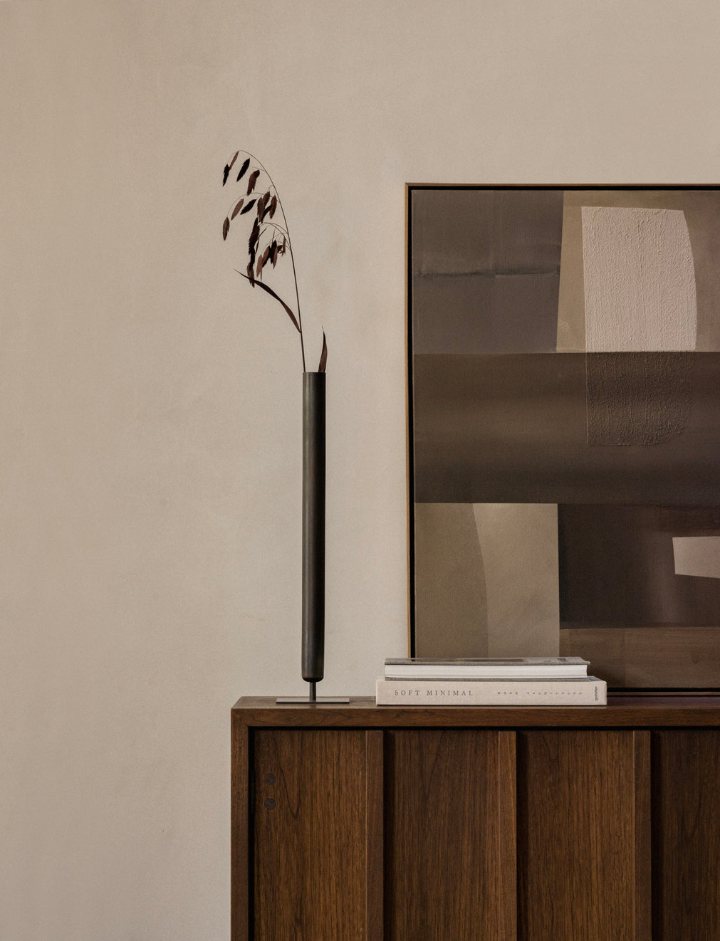 Simple. Sophisticated. Sculptural. The Stance Vase is inspired by traditional display stands to provide support for branches or long-stemmed flowers. The bronzed brass vase patinates beautifully over time and the understated design lends itself to any setting. Available in two sizes. Designed by Colin King for Audo Copenhagen.