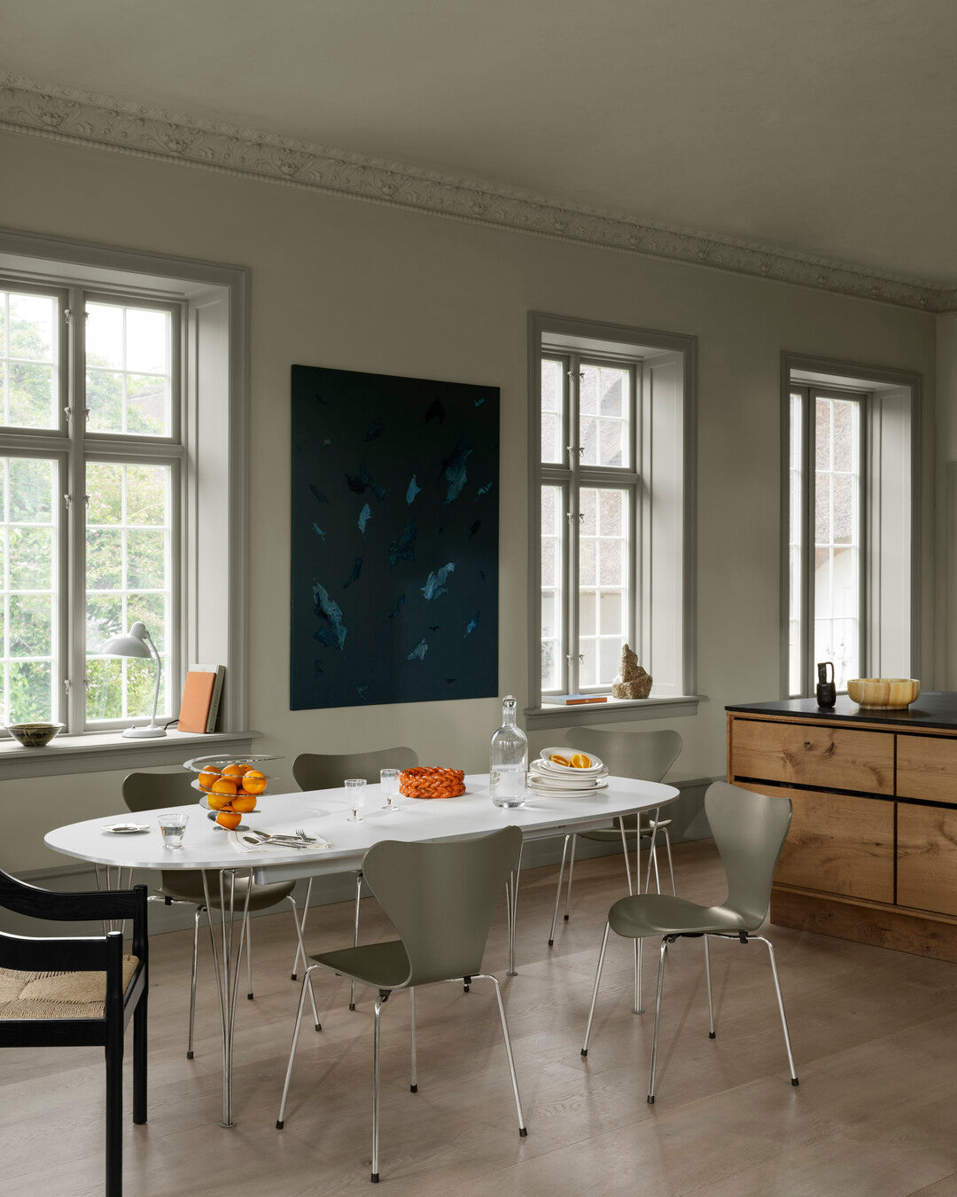 The Superellipse B616 table by Fritz Hansen comfortably accommodates six chairs, encouraging open and inclusive gatherings with no designated “head of the table.” Crafted with attention to detail and the principles of Scandinavian design, it brings a timeless, minimalist aesthetic to modern interiors. The table has earned EU Ecolabel (EU Flower) certification, ensuring that it meets the highest environmental standards throughout its lifecycle.