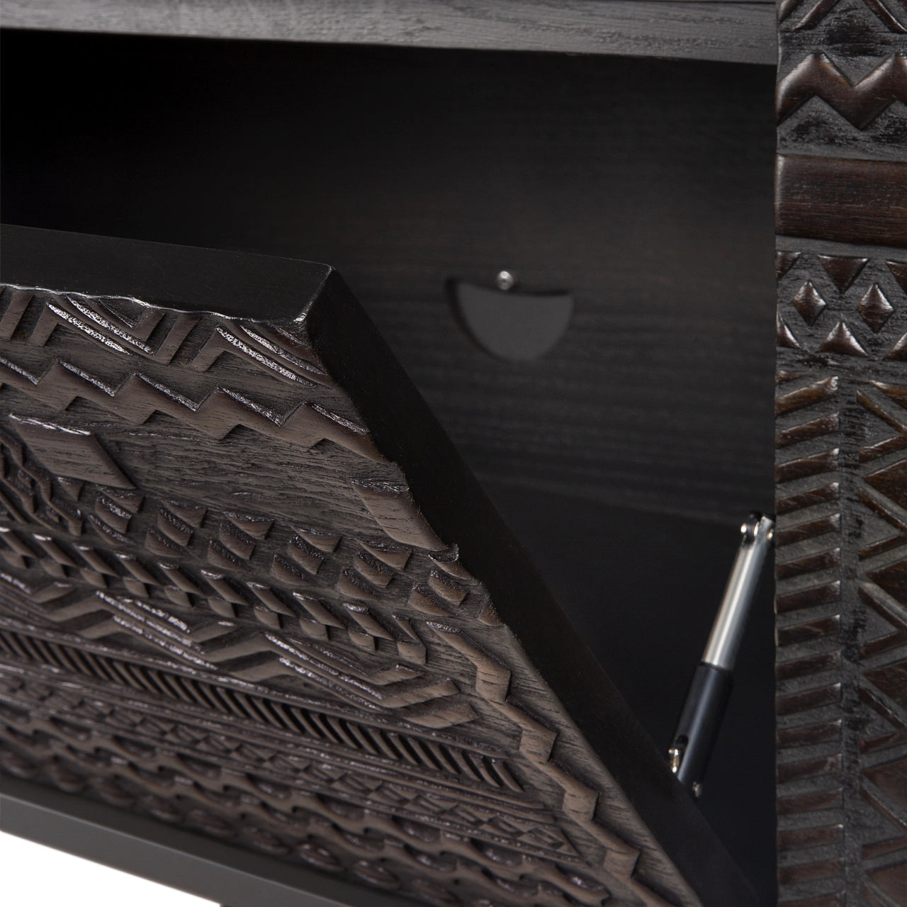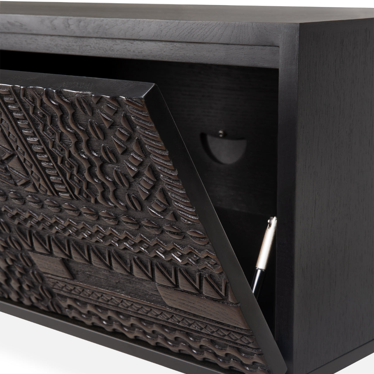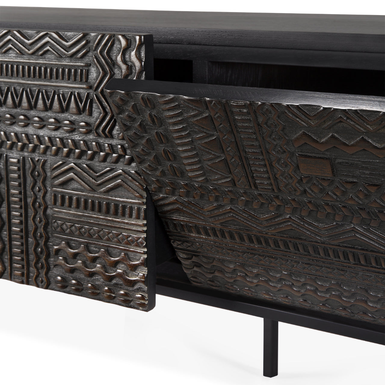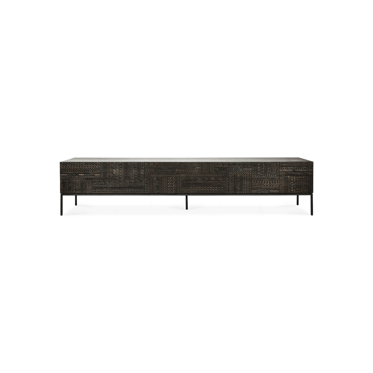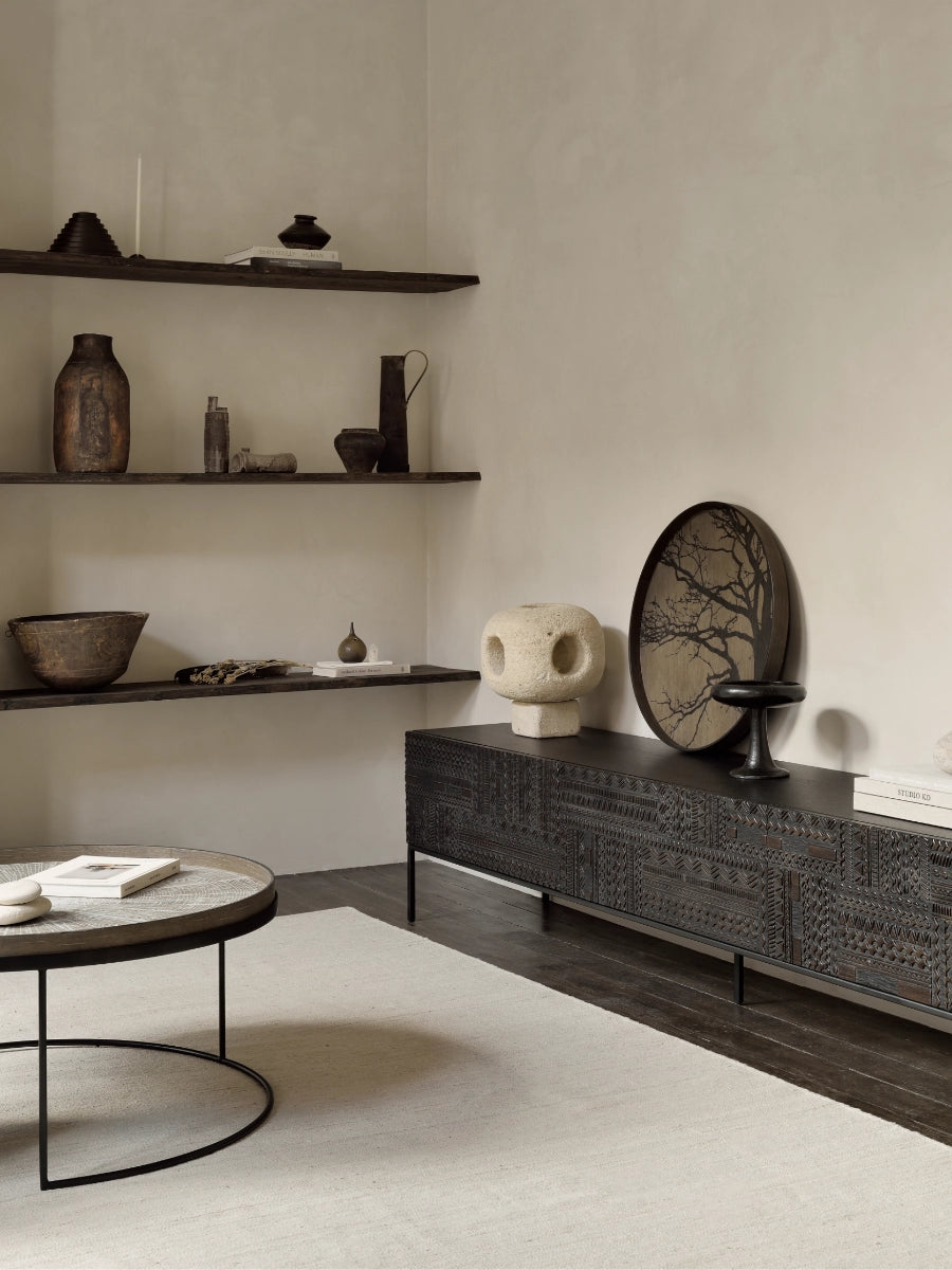 The Tabwa TV Cupboard by Ethnicraft brings refined storage and sculptural balance to living spaces shaped by Scandinavian design principles that value simplicity and purposeful form. Its clean silhouette, paired with warm solid wood and graphic detailing, creates an inviting focal point beneath a television or art display.