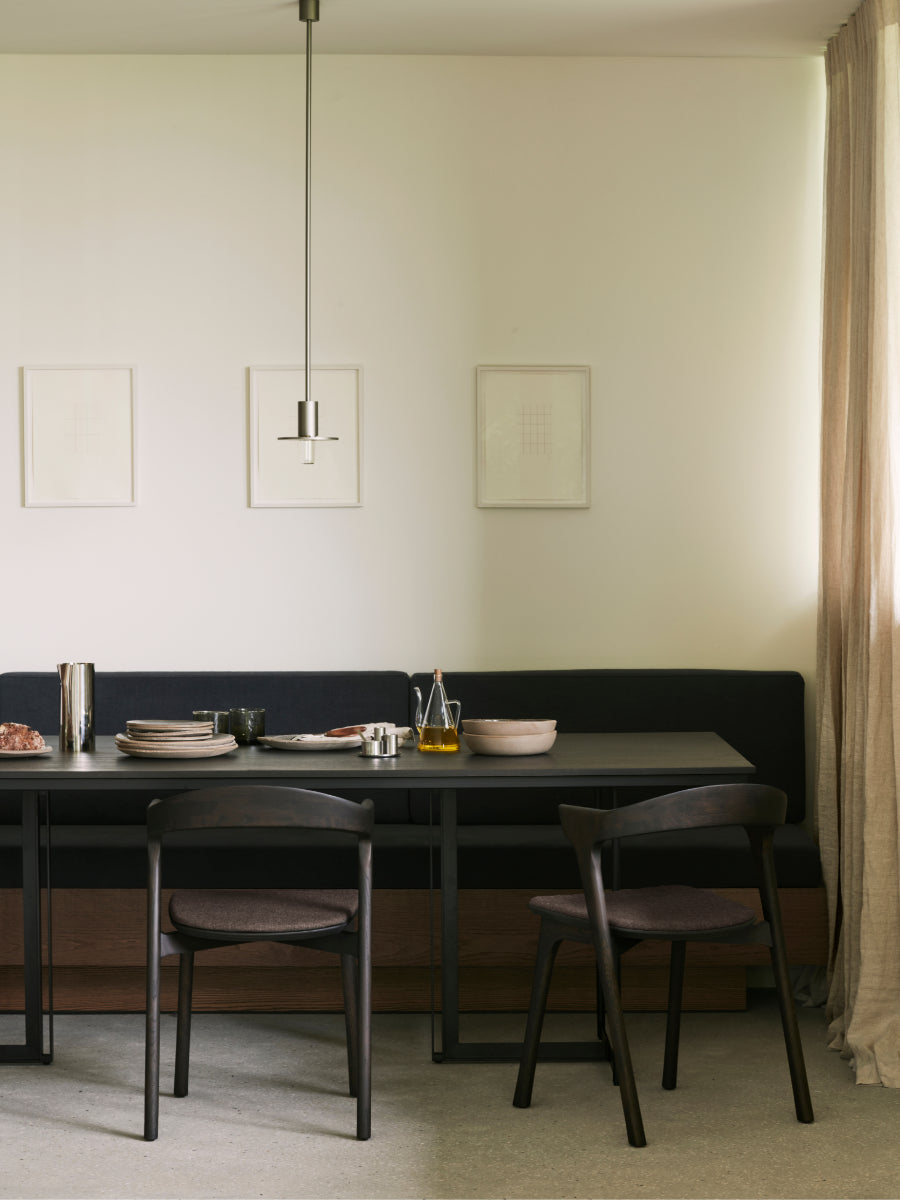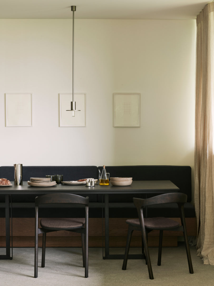 Crafted from solid oak with a hard wax oil finish, the Tacet Dining Table by Ethnicraft balances material integrity and lasting performance for daily use. The clean silhouette and thoughtful proportions reinforce Scandinavian design’s emphasis on harmony and understated elegance, making this table a versatile center piece that supports conversation and connection.