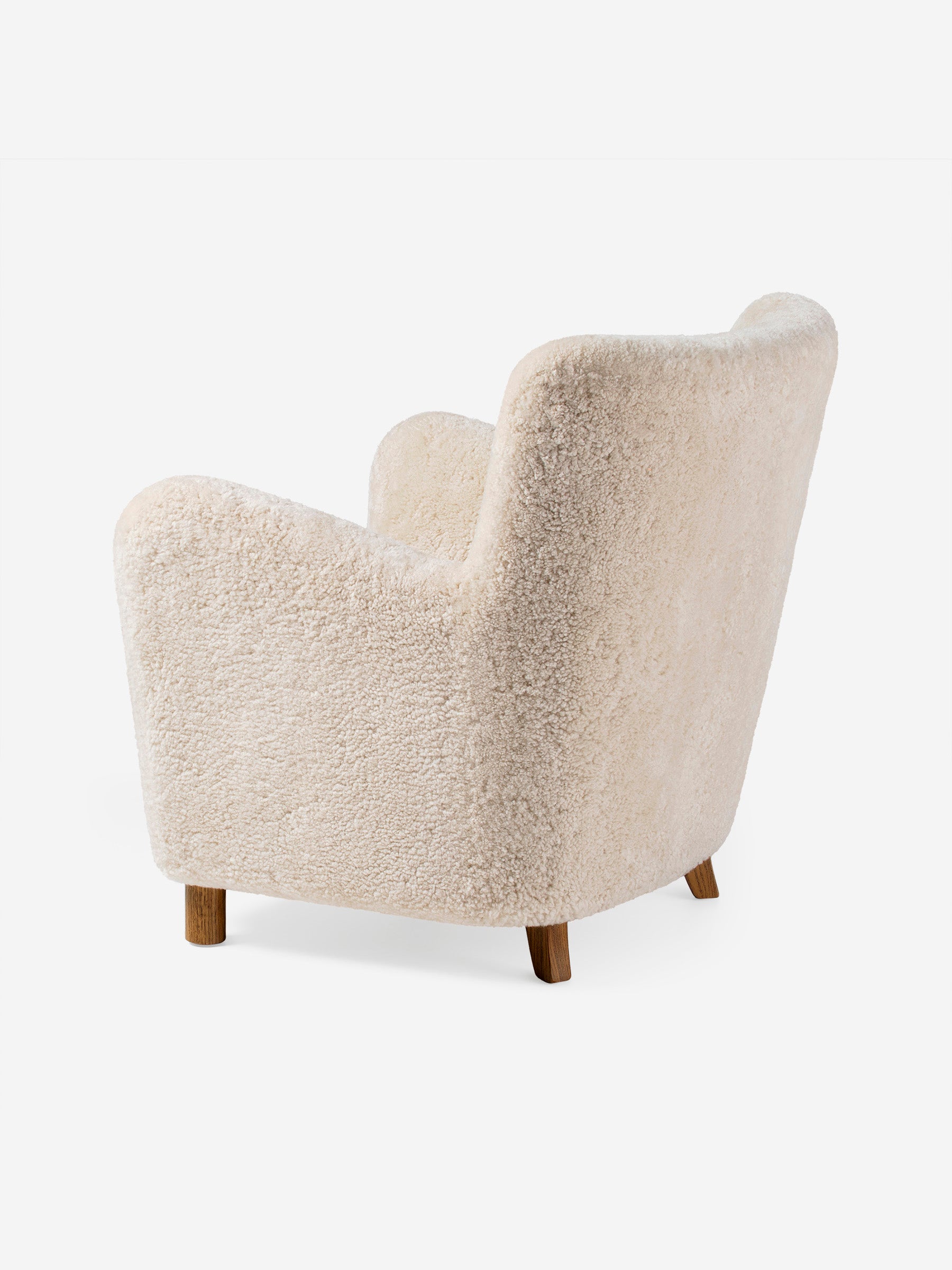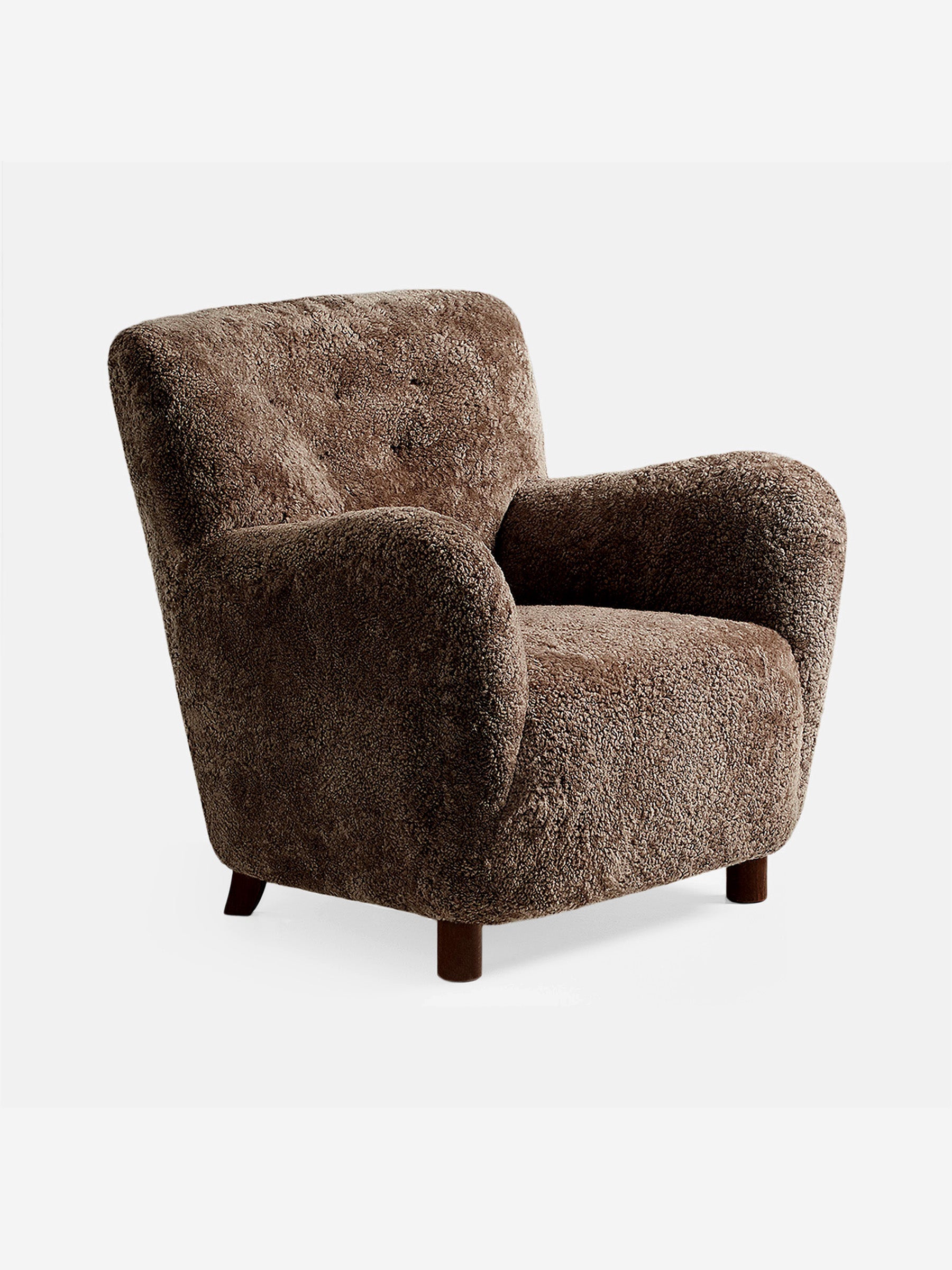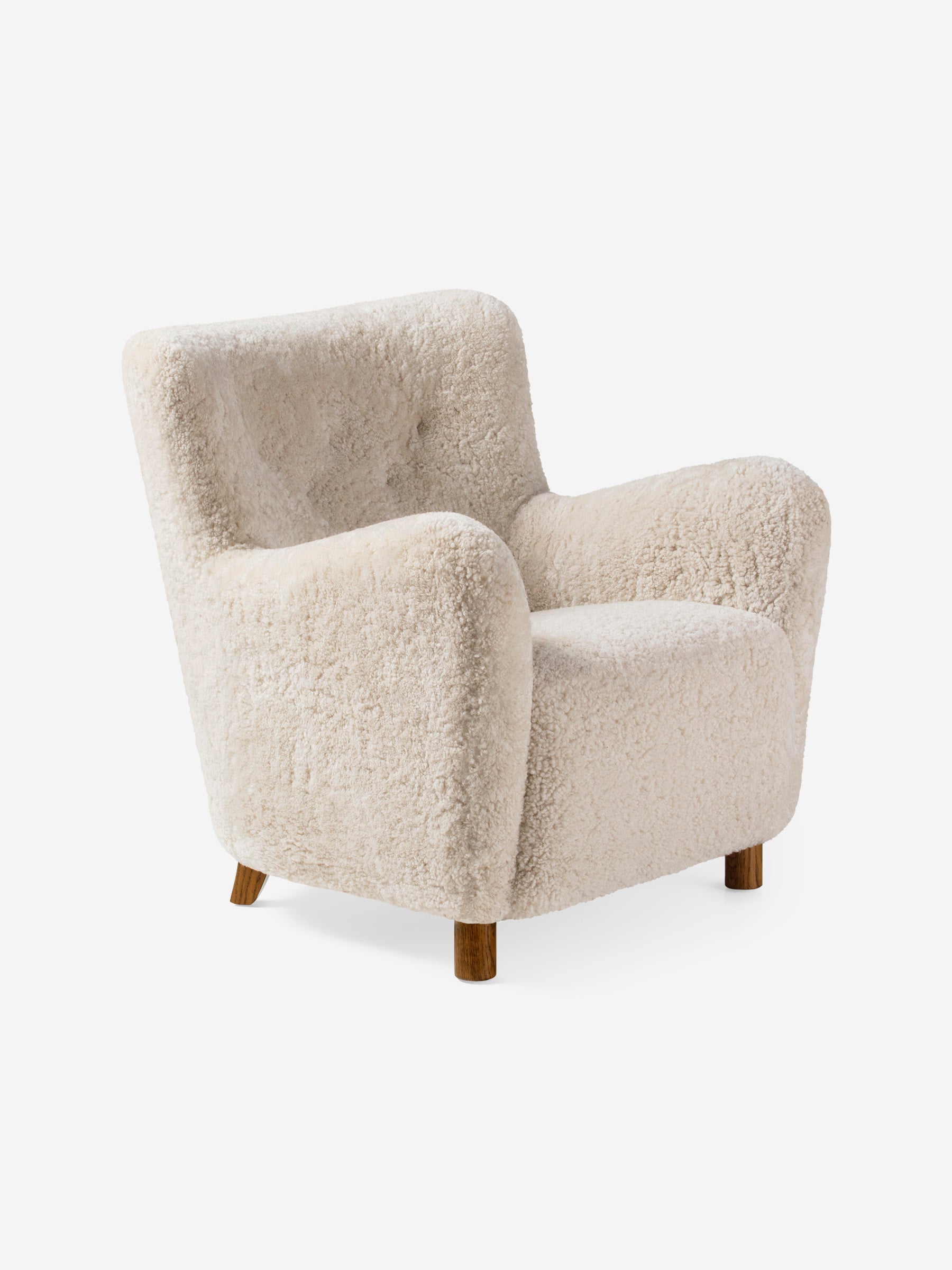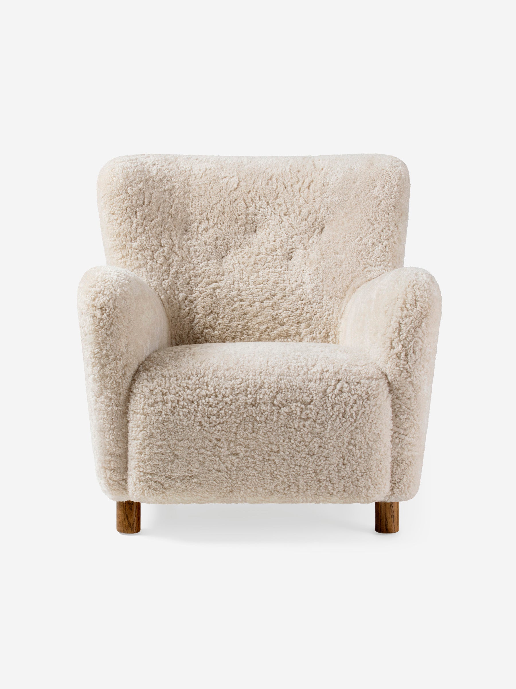 Solid beech wood frame constructed using traditional joinery methods. Upholstered in genuine sheepskin or fabric with foam padding & fully sprung seat. European Oak or American walnut feet.