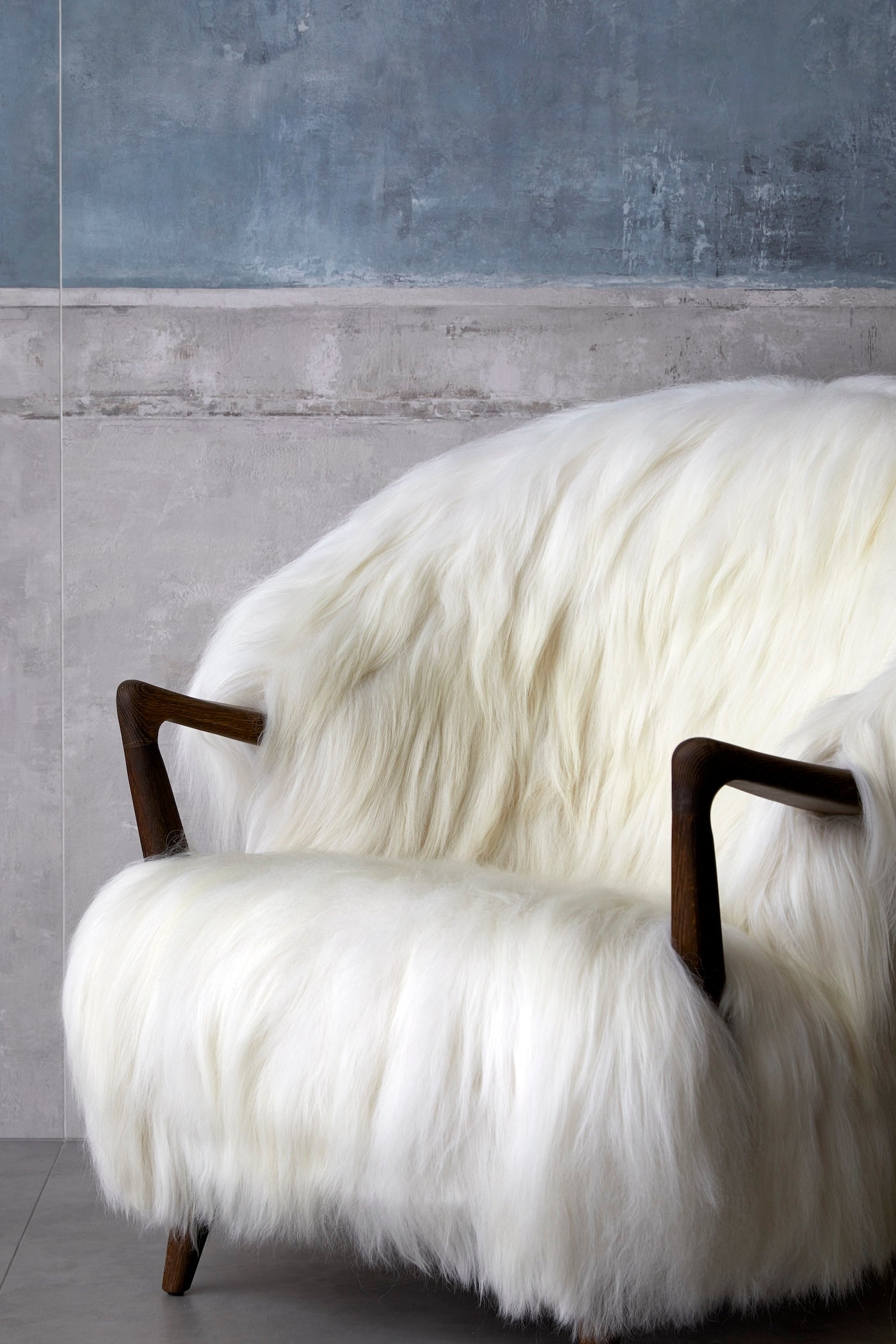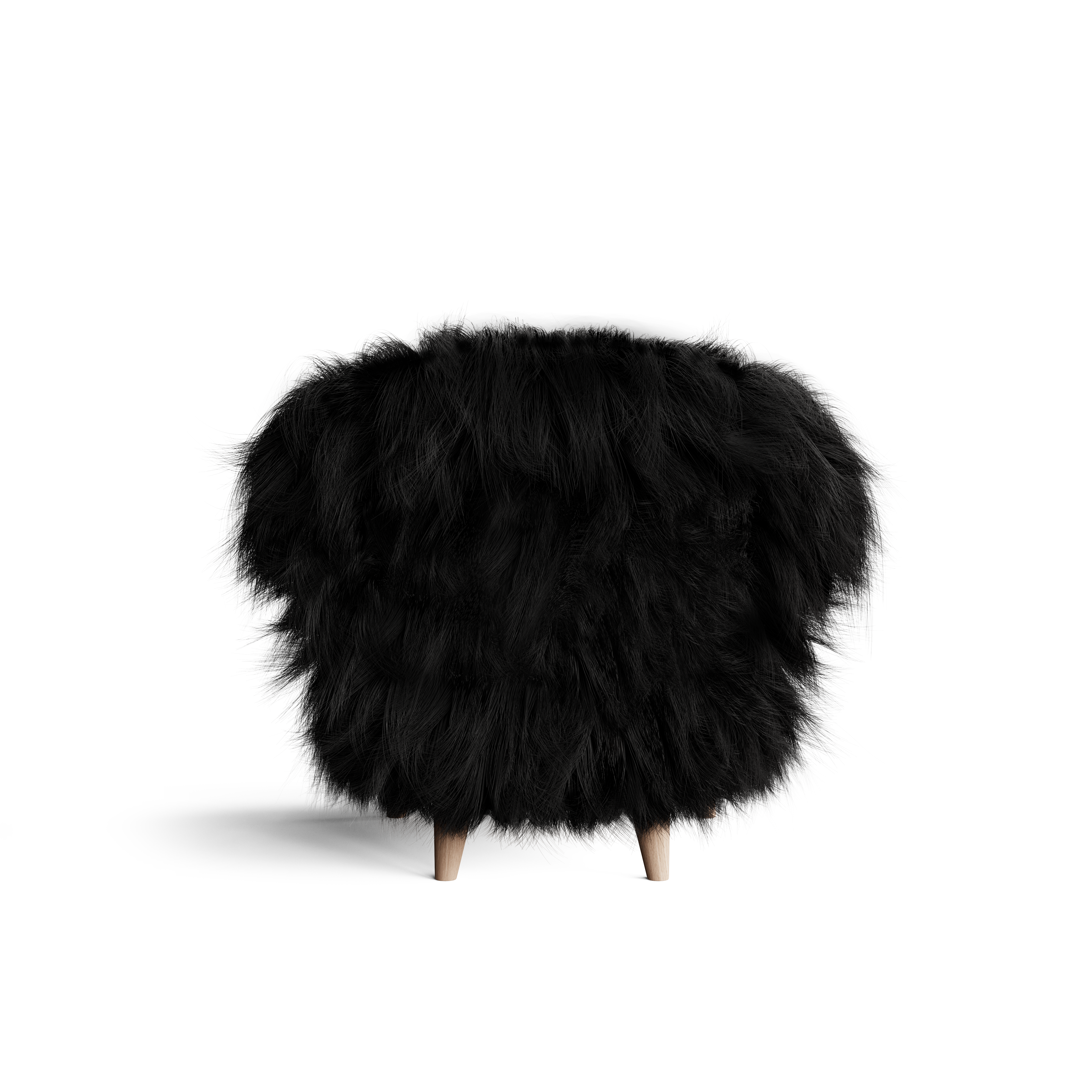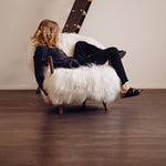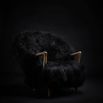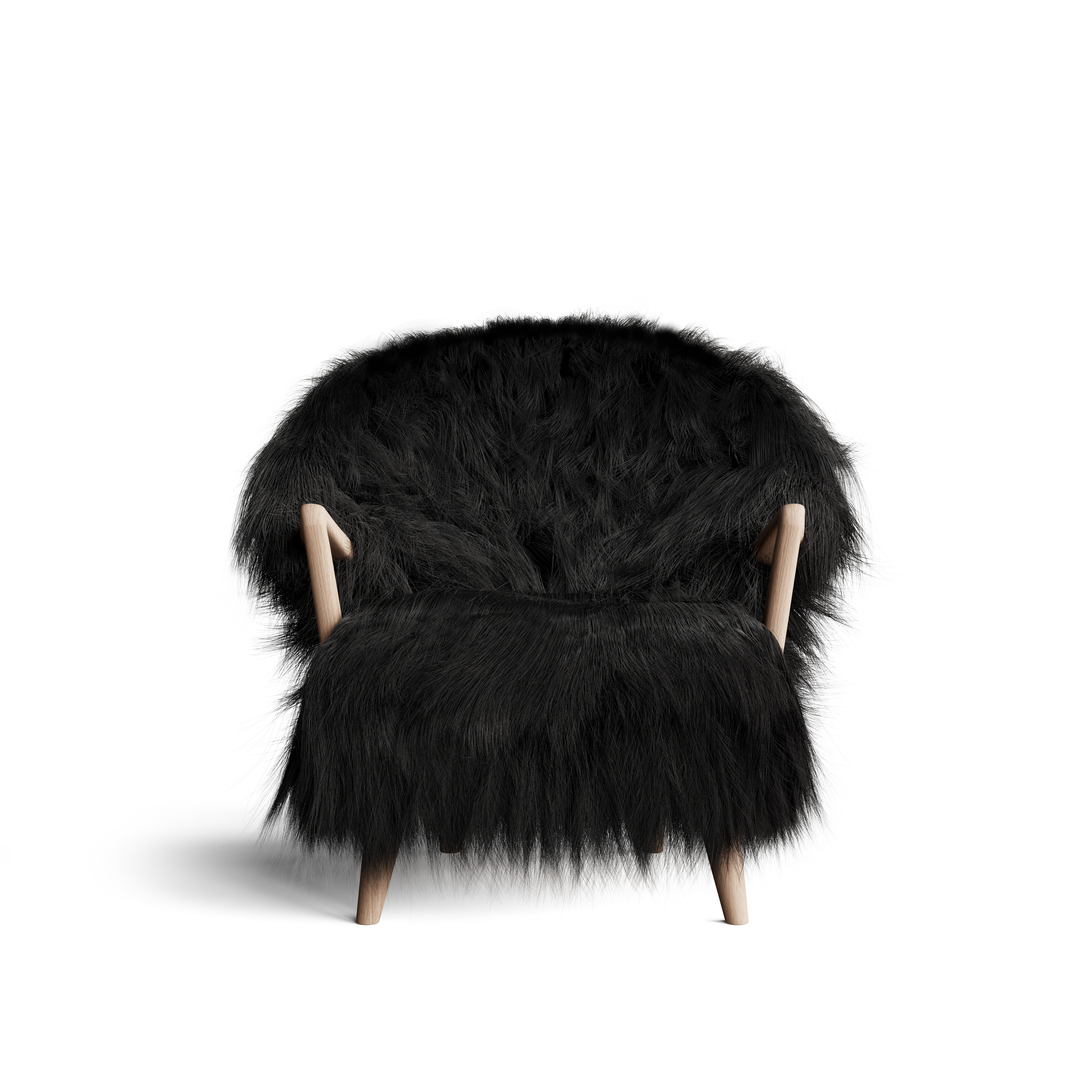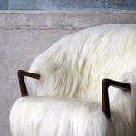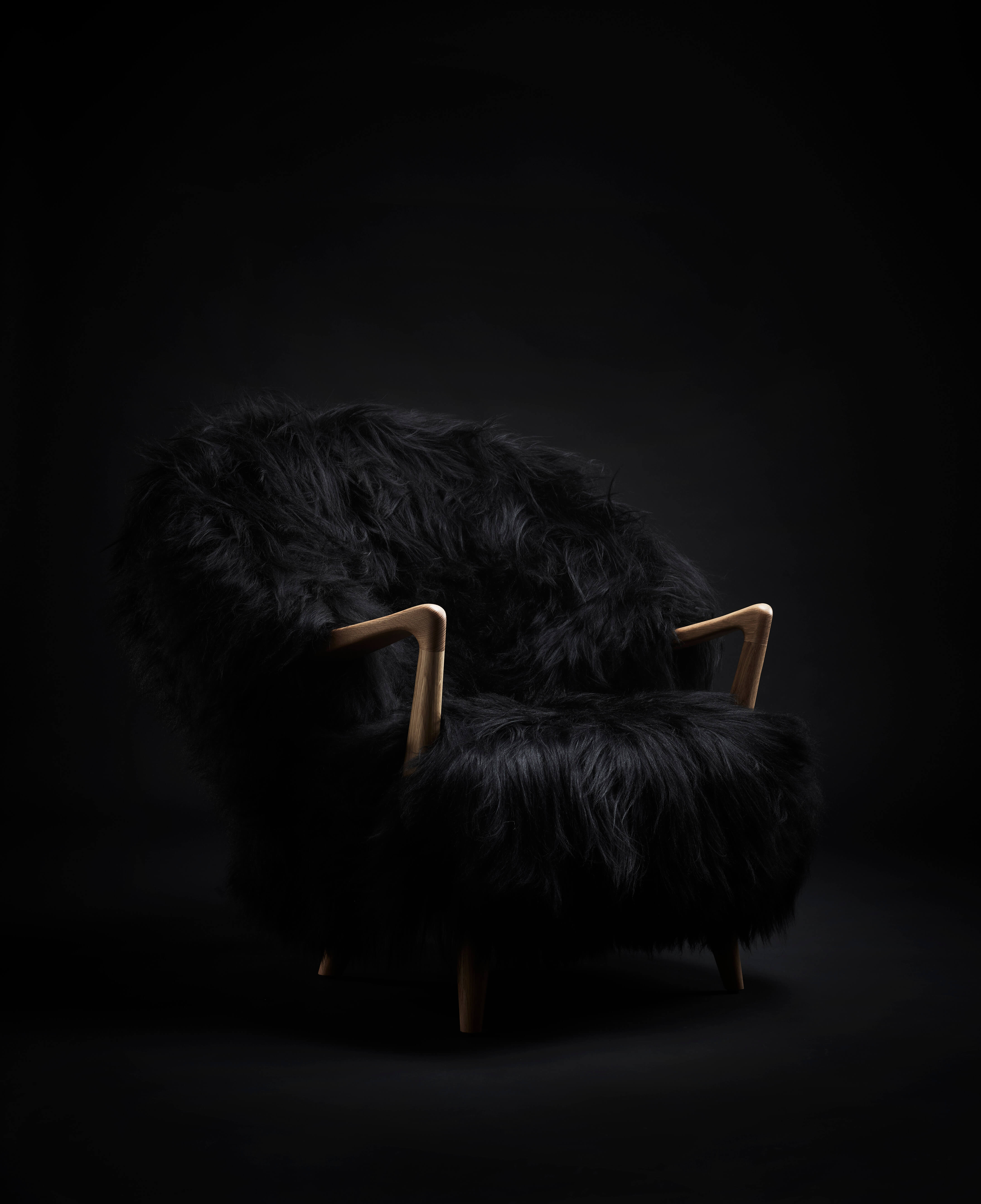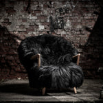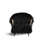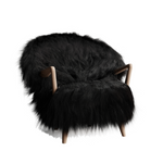 The Eikund Fluffy Chair works beautifully as a standalone statement piece, as a pair, or arranged in a circle of four for the ultimate cozy lounge setting. Each Eikund Fluffy Chair comes in premium cream or black shearling with walnut or oak arms and legs and includes a brush for maintaining the natural shearling.