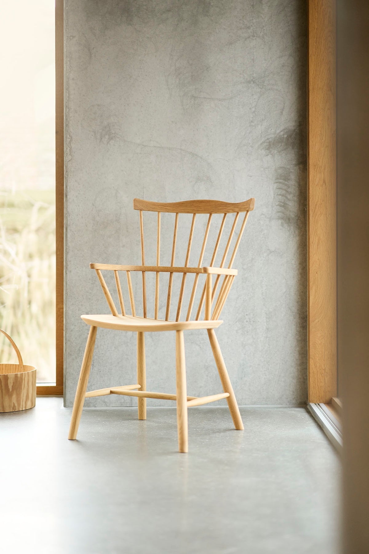 Børge Mogensen's J52B chair, designed in 1952, reflects his penchant for reinterpreting historical precedents, such as the classic English Windsor chair. Originating in 16th‑century England, the Windsor was valued for its sturdy construction and enduring comfort.