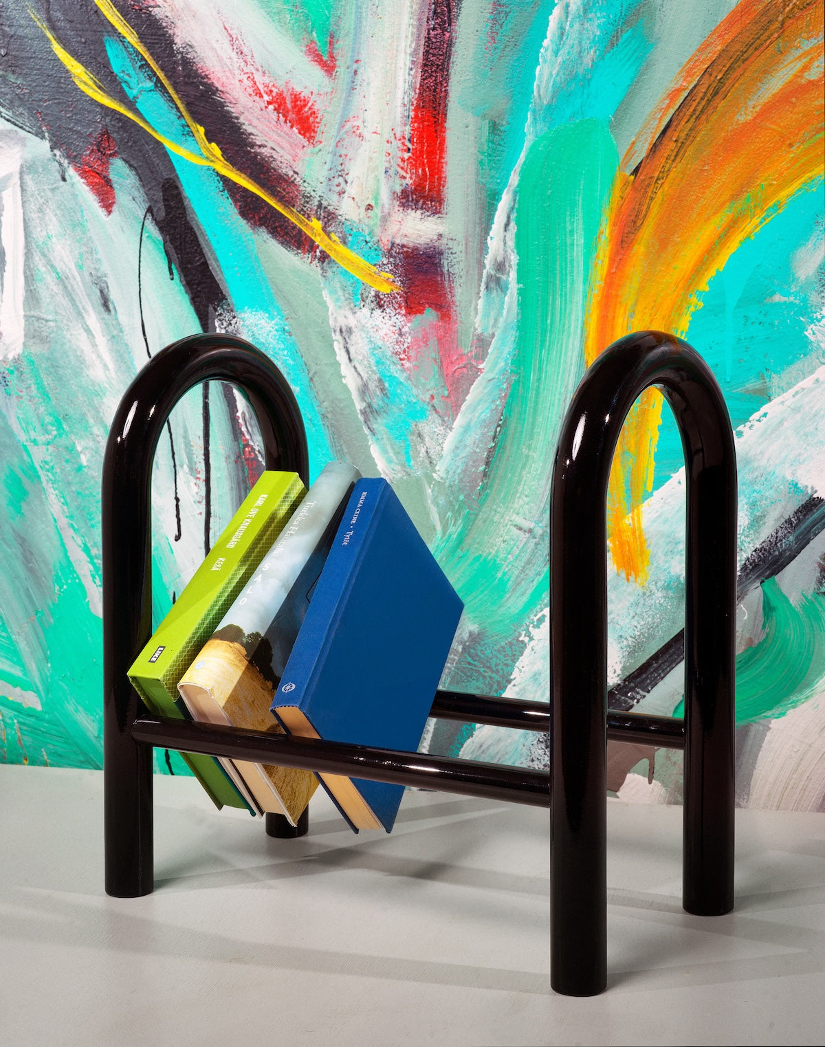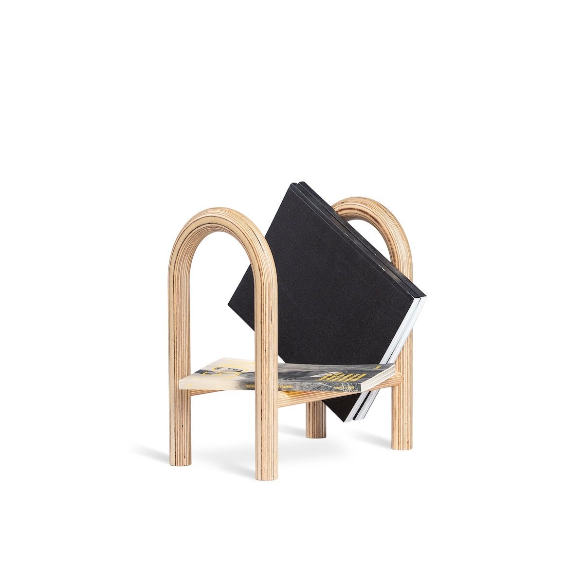 Icelandic designer Katrín Ólína has collaborated with Made by Choice to create home products that celebrate reading. Reading Horse is a small portable bookshelf utilizing a simple construction of two 35 mm bent laminated plywood tubes held together by two bars.
