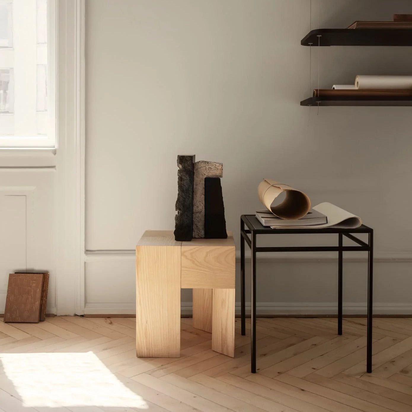 The Dutch designer, Aldo Bakker, is known for his uncompromising approach to design. This is a perfect example of his work. TriAngle consists of 12 triangular elements—cut to fit together like the perfect puzzle. The final puzzle reveals a square stool or side table with a distinguished and very precise look. The sharp corners and visible cuts will become softer and gain patina over time, making tear, wear and decay a very essential part of this design.