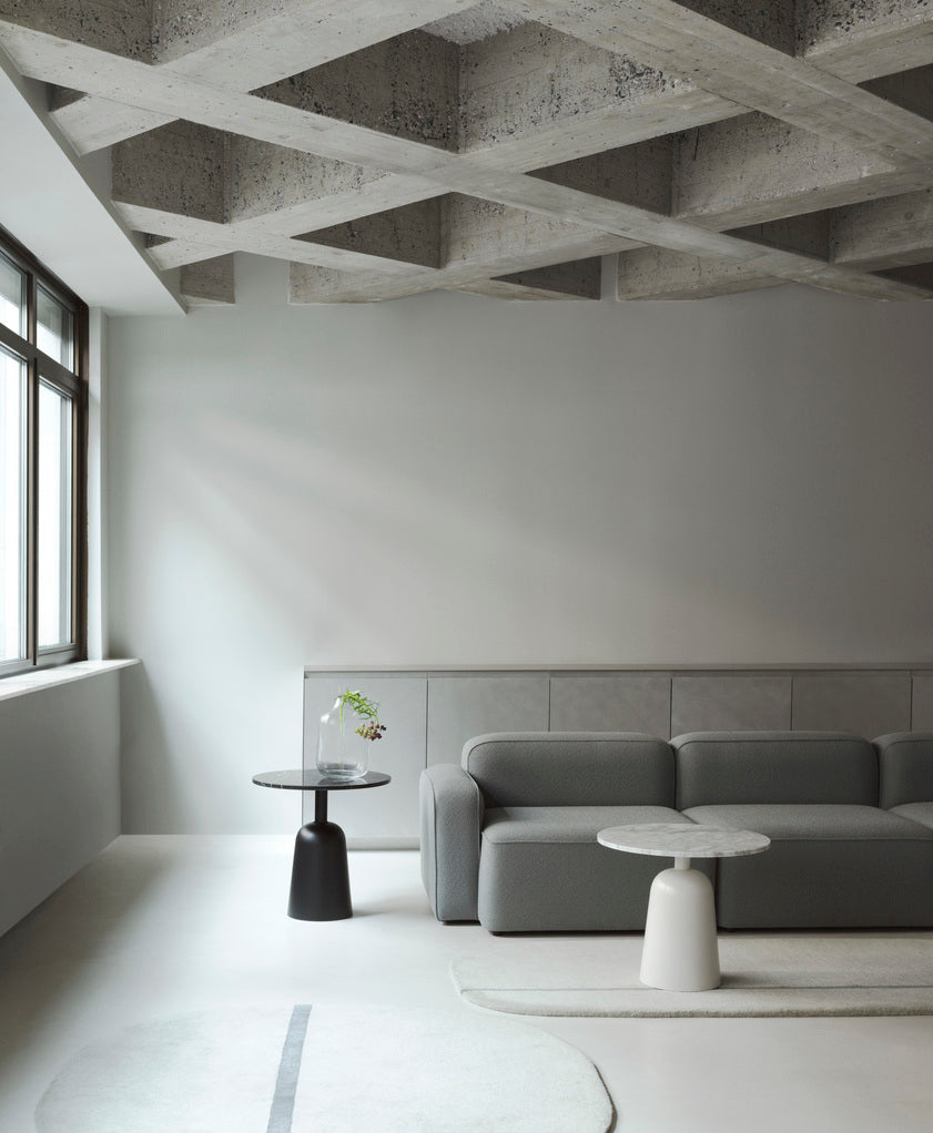 As such, this side table can be easily adjusted to suit existing surroundings. Beyond acting as a visual ballast to the light tabletop, the distinctive base also serves as a stabilizing center of gravity and reflects the way in which Turn has been clearly designed around its function. Turn is well-suited for use as a coffee or side table and can be placed on its own or in a group of small tables in a living room or lounge area.