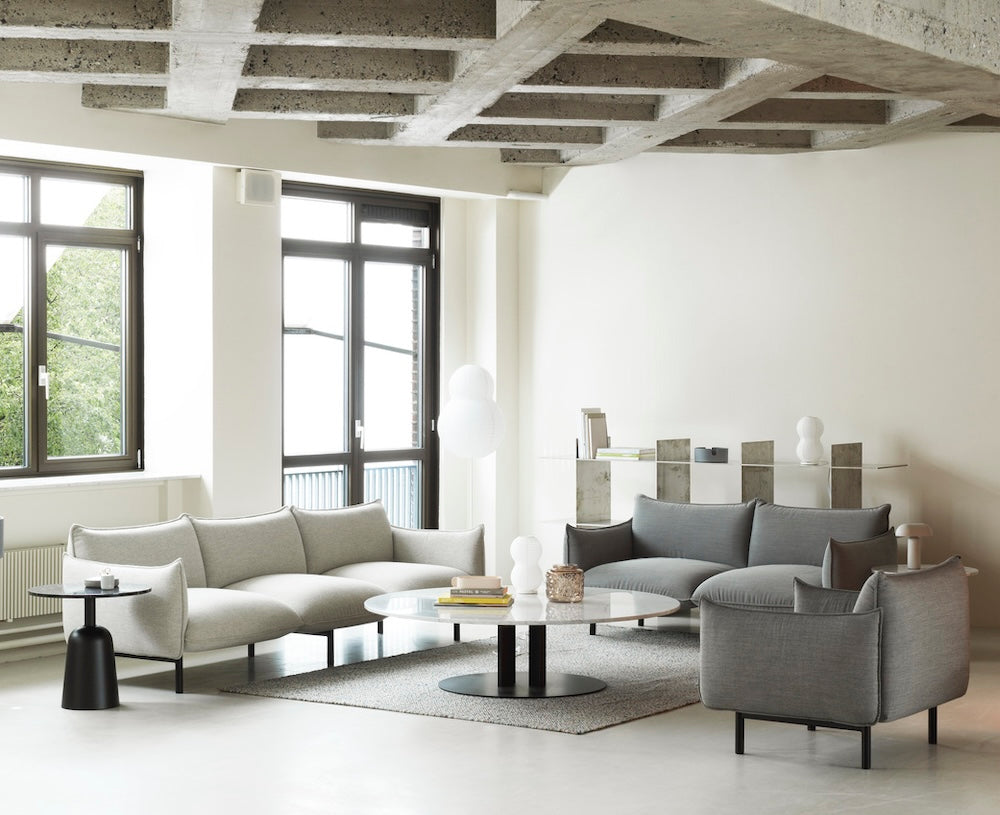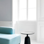 As such, this side table can be easily adjusted to suit existing surroundings. Beyond acting as a visual ballast to the light tabletop, the distinctive base also serves as a stabilizing center of gravity and reflects the way in which Turn has been clearly designed around its function. Turn is well-suited for use as a coffee or side table and can be placed on its own or in a group of small tables in a living room or lounge area.