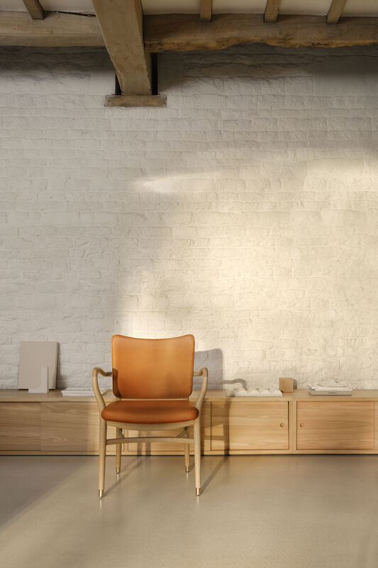 Discover the essence of Danish design and Scandinavian design with the VLA61 Monarch Chair by Carl Hansen & Søn — a masterpiece originally created by renowned architect Vilhelm Lauritzen, a pioneer of Danish modern aesthetics and celebrated as a true master of detail. Guided by a functionalist philosophy where form follows function, Lauritzen crafted the poetic VLA61 Monarch Chair with double-curved armrests, an organically shaped frame, and refined brass feet. The chair’s graceful silhouette and sculptural presence are perfectly balanced by exceptional comfort—sitting in it feels like an embrace.