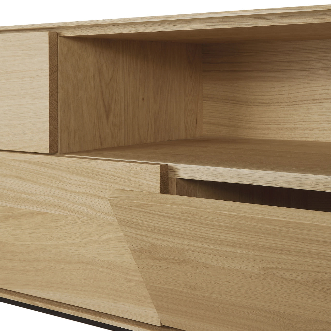The Whitebird TV Cupboard by Ethnicraft combines refined storage with sculptural clarity inspired by Scandinavian design. Softly rounded legs and clean graphic lines create a light, airy silhouette, while push-open doors and drawers offer balanced, functional storage beneath a television or art display.
